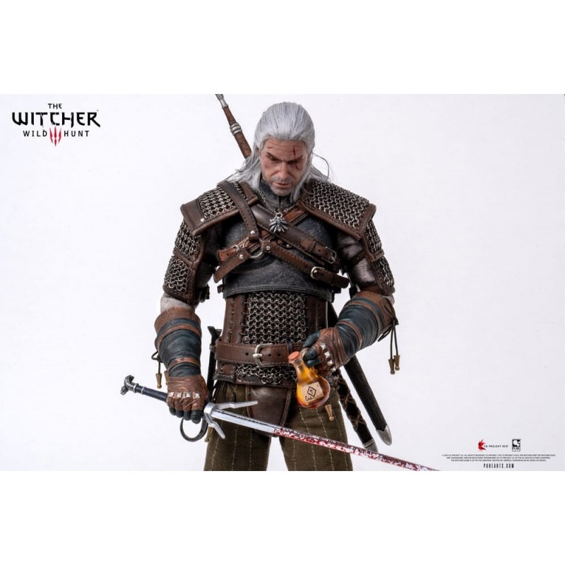 Sumérgete en el mundo épico de The Witcher 3 con esta impresionante figura articulada de Geralt of Rivia. A escala 1/6 y con un tamaño de aproximadamente 30 cm, captura cada detalle del legendario cazador de monstruos. Luciendo su emblemática armadura con una malla detallada y acabado metálico, la figura refleja la destreza y el poder de Geralt.