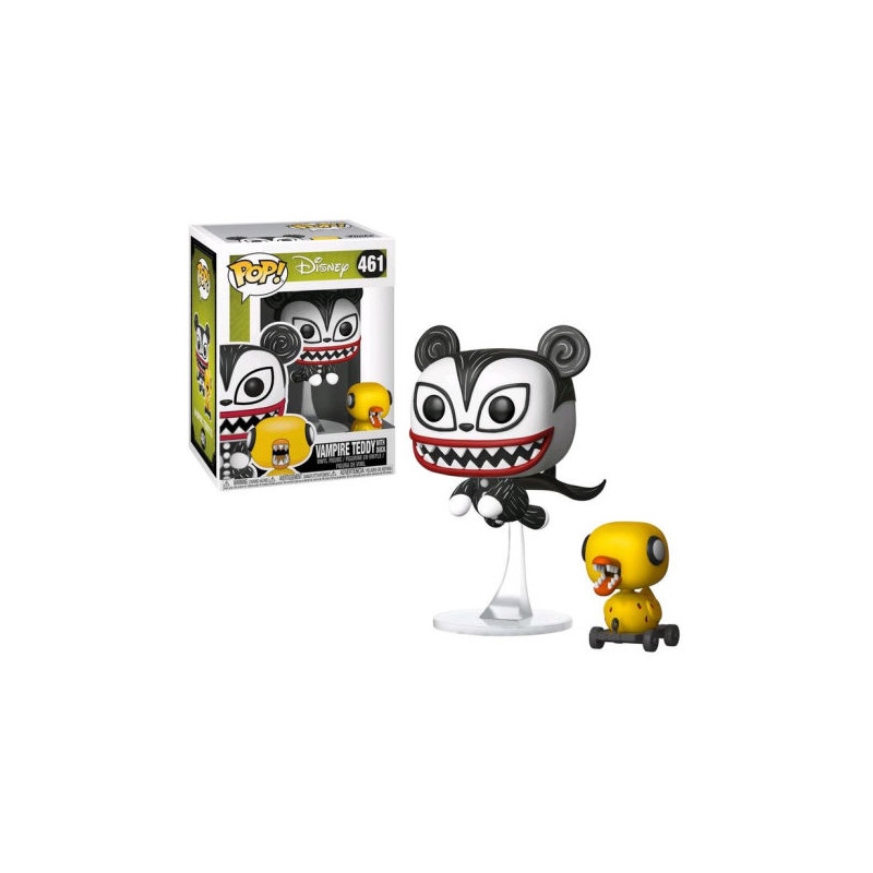 Y en esta ocasión Funko nos trae una figurita realmente especial de la saga de una de las historias más aclamadas del mundillo de Tim Burton, Pesadilla Antes de Navidad, y uno de sus personajes más singulares, Vampire Teddy. Se trata de una original figura en la que aparece Teddy Vampiro con el pato zombie.