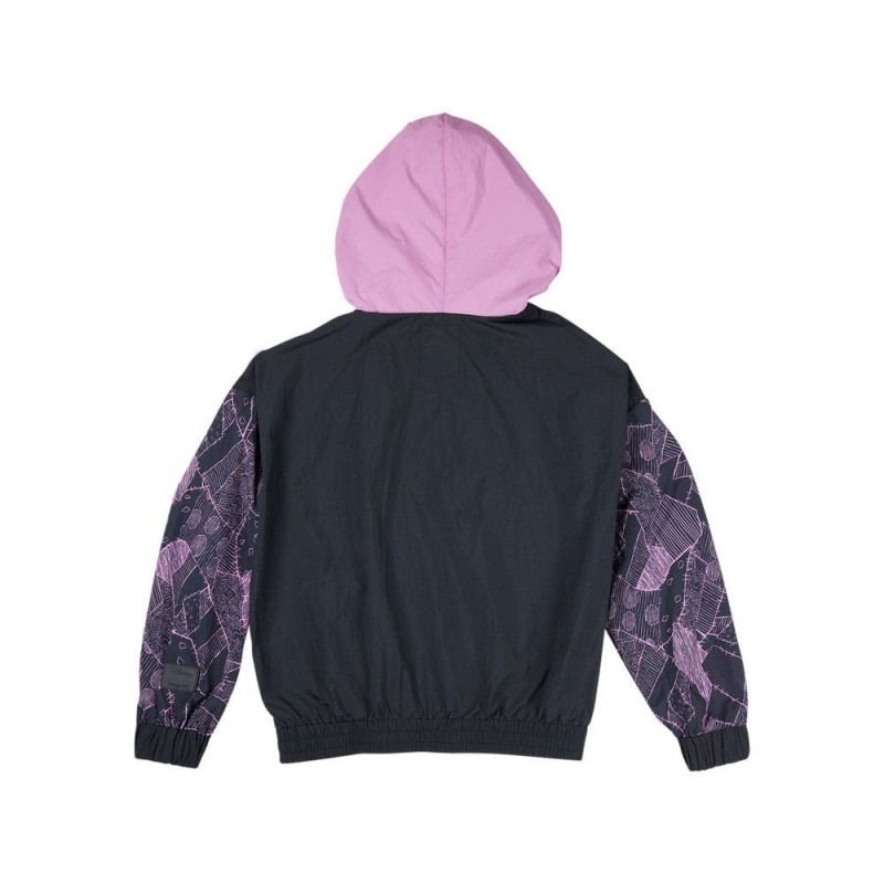 Descubre la chaqueta cortavientos bomber Sally de Pesadilla antes de Navidad diseñada por Loungefly. Con licencia oficial, este cortavientos está hecho de resistente nylon, ideal para los días ventosos y lluviosos. Presenta un elegante diseño en rosa y negro, con mangas y capucha rosas contrastando con el cuerpo negro. Las mangas tienen un patrón de dibujos en negro sobre rosa, aportando un estilo único y trendy.