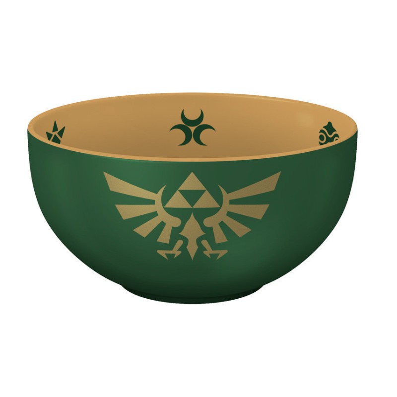 Descubre el bowl de The Legend of Zelda con un diseño exclusivo del Hylian Crest. Este bowl cuenta con un elegante acabado en verde oscuro con detalles dorados del icónico emblema Hyliano. Con un generoso tamaño de 600 ml, es perfecto para tus cereales, sopas o cualquier comida que desees disfrutar mientras te sumerges en el mundo de Hyrule.