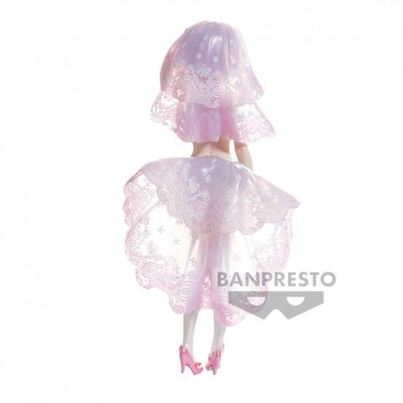 El vestuario de Ram es una mezcla encantadora de colores rosa y blanco, adornado con detalles florales. Su aspecto combina un toque elegante y fantasioso, creando una representación perfecta del personaje que fascinará a cualquier fan. El velo y los adornos florales añaden un aire sofisticado, haciendo de esta figura una pieza llamativa en cualquier colección.
