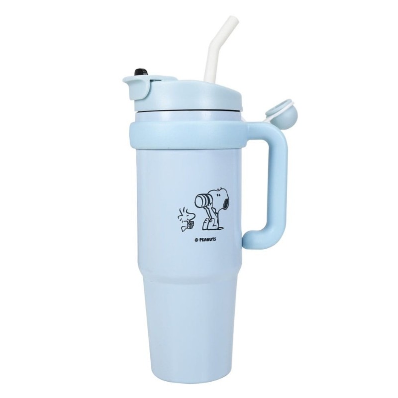 Su estructura incluye una práctica paja y un cómodo asa, lo que la hace fácil de llevar a cualquier lugar. Es un producto con licencia oficial de Peanuts, fabricado por Blue Sky Studios, asegurando autenticidad en cada detalle. Ideal como regalo original o para darte un capricho único.