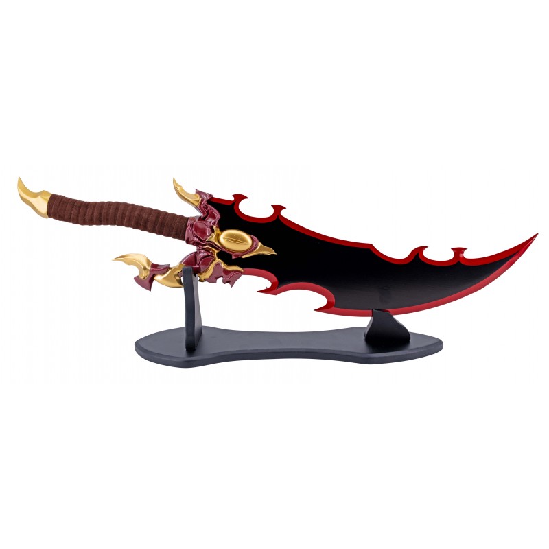 Descubre la Réplica de la Daga del Rey Demonio de la popular serie Solo Leveling. Esta impresionante réplica mide 62 cm y está diseñada con una hoja de acero de acabado negro, resaltada por un borde rojo que le añade un toque dramático. Su guarda con ojo de dragón y su mango de polipiel marrón brindan un acabado elegante y único. Un soporte ajustable complementa este magnífico objeto de colección, ideal para los verdaderos fans de la serie.