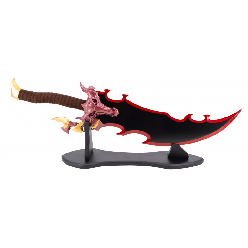 La Daga del Rey Demonio de Solo Leveling es una réplica perfecta que captura la esencia del poder y la fantasía. Este impresionante objeto de colección mide un total de 62 cm, con una hoja de acero de 38 cm de longitud y un grosor de 4 mm, acabado en negro con un llamativo borde rojo.