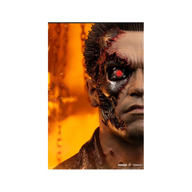 Este busto es una edición exclusiva de Pure Arts, limitada a 1984 unidades, y requiere 3 pilas AA (no incluidas) para el funcionamiento de las luces LED. Es un artículo imprescindible para los coleccionistas y amantes de la saga Terminator.