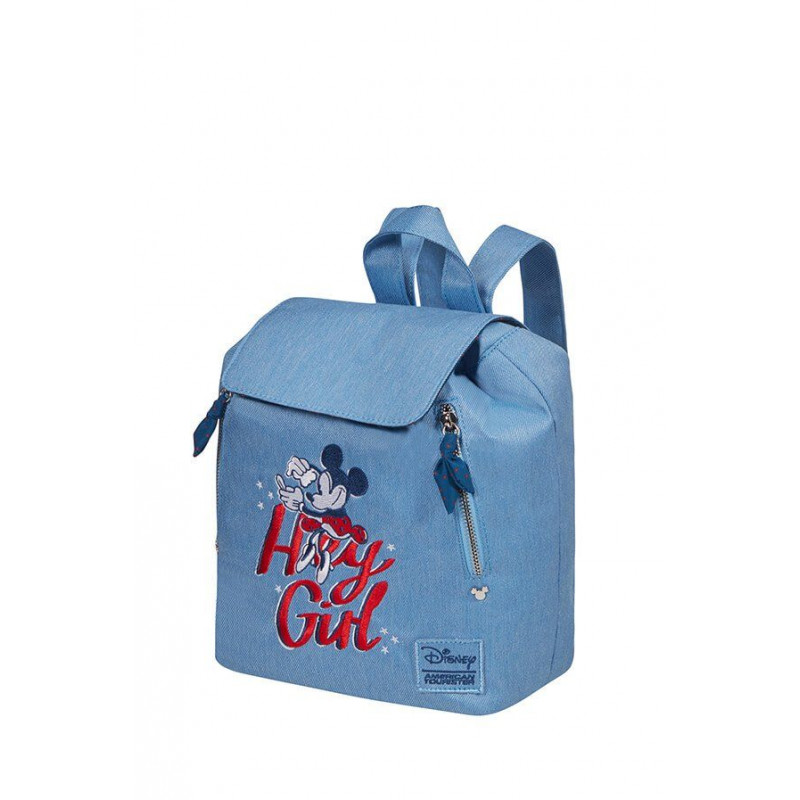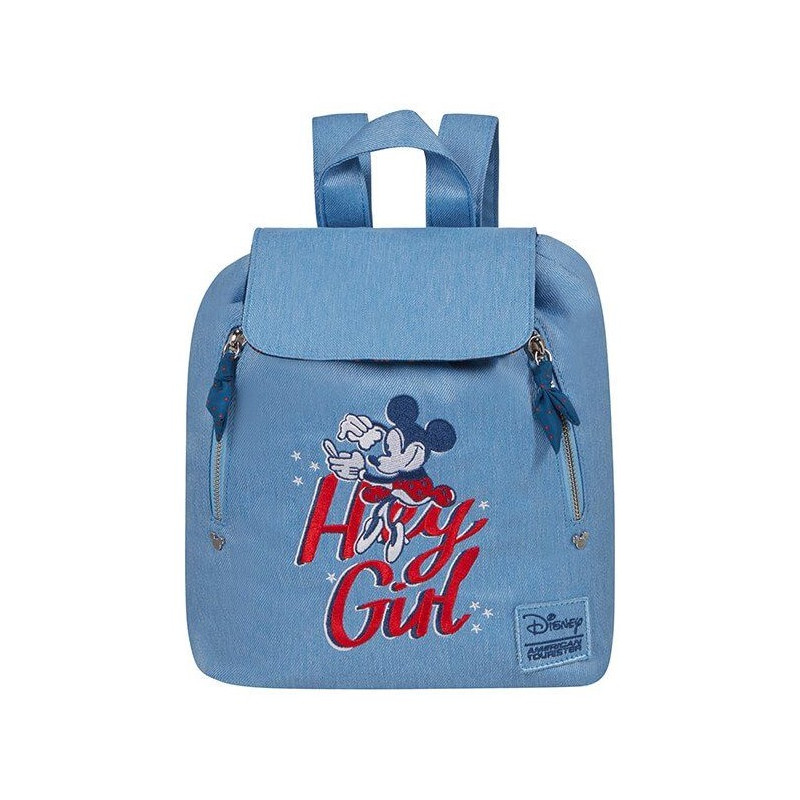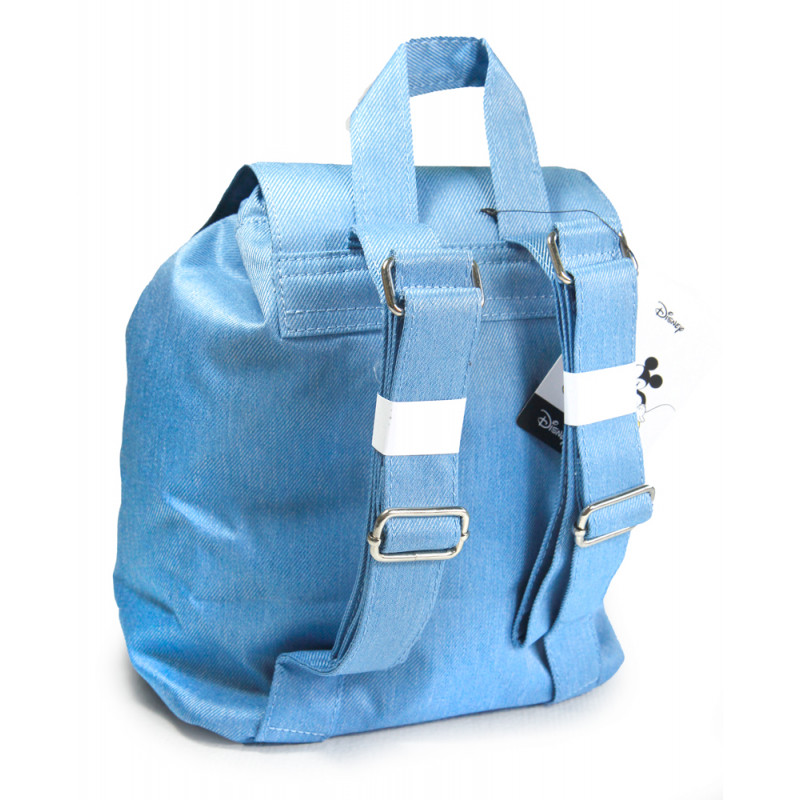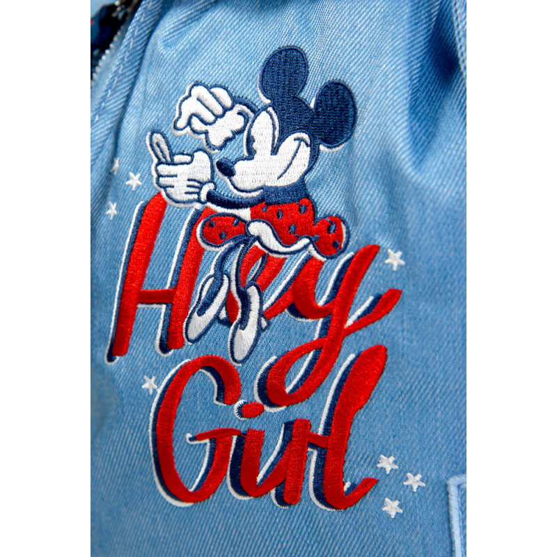 Se trata de una pequeña mochila de tela vaquera super ponible con Minnie bordada en azul y rojo sobre el texto Hey Girl!. Pero fíjate en los detalles, tiene dos bolsillos cerrados con cremalleras adornadas primorosamente con un lacito con los míticos topitos de Minnie y un poco más abajo una silueta de ella con las orejitas en metal. Cuenta con una extraordinaria calidad tanto en materiales como en acabados y con licencia oficial de Disney.