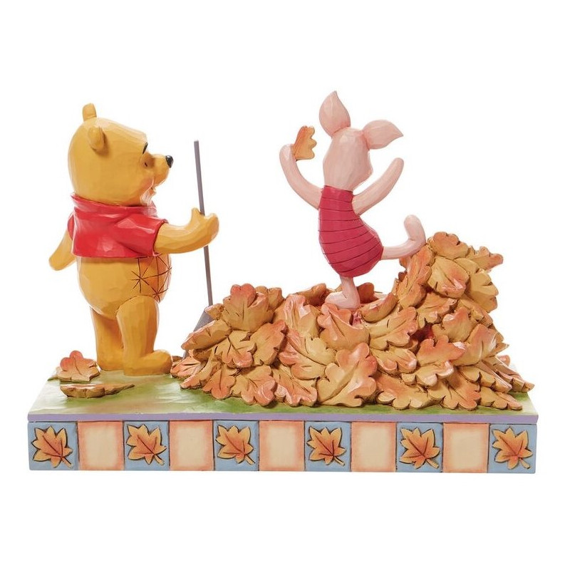 Se trata de una detallada figura que reproduce a Winnie Pooh y Piglet recogiendo las hojas de otoño. Unas auténticas obras de arte en miniatura, diseñadas y reinterpretadas de manera genial por algunos artistas pop como Jim Shore y se trata de una pieza fabricada en resina, con una cantidad de detalles excepcional y fidelidad absoluta a los personajes originales, pintados a mano cuidadosamente. Mide aproximadamente 14 x 9 x 4,5 cm.
