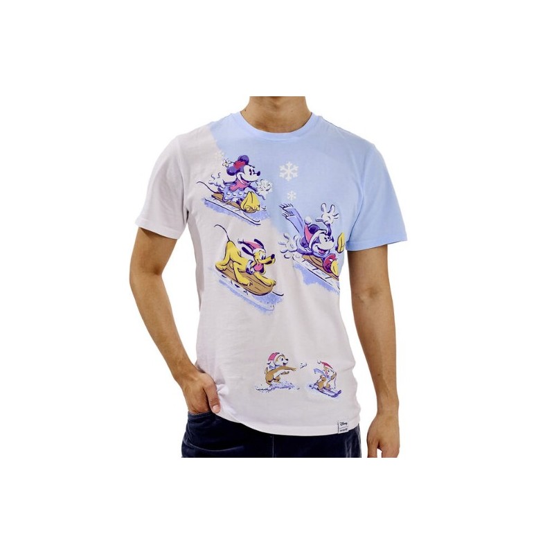 Descubre la camiseta Mickey & Friends de LOUNGEFLY, un artículo ideal para los amantes de Disney. Esta camiseta de manga corta presenta un diseño alegre y colorido, donde se puede ver a Mickey, Pluto y sus amigos en una divertida escena de invierno sobre trineos. El fondo azul claro contrasta perfectamente con los personajes, haciendo que resalten aún más. Fabricada con materiales de alta calidad, esta camiseta no solo es cómoda, sino también duradera, perfecta para el uso diario. Su diseño moderno y original convierte esta prenda en un regalo excelente o en un capricho personal. Disponible en varias tallas para adaptarse a todos los entusiastas de Disney.