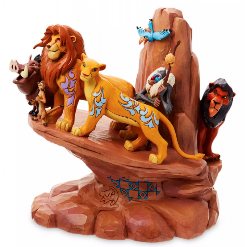 Esta fascinante creación de Jim Shore celebra el 30.º Aniversario de El Rey León, el éxito de Disney de 1994. Con un diseño de patchwork y el dibujo de Rafiki del pequeño Simba, la Roca del Rey se presenta majestuosa con los personajes principales posando sobre el promontorio.