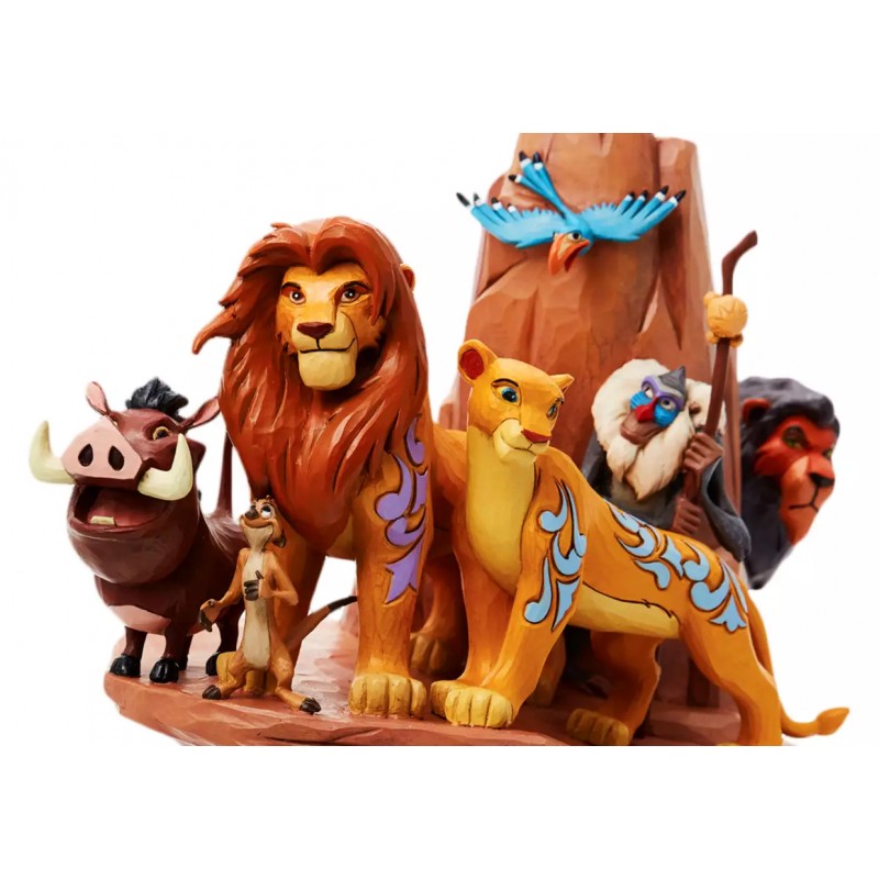 La figura incluye a Simba, Nala, Timón, Pumba, Rafiki, Zazú y Scar, cada uno esculpido con gran detalle. Está bellamente pintada a mano y fabricada en resina de alta calidad, mostrando los motivos del arte popular característicos del artista. Espera variaciones únicas en cada pieza, ya que está pintada a mano, lo que garantiza su exclusividad.