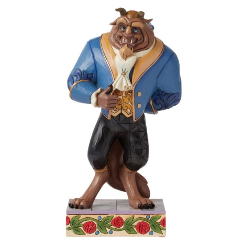 Descubre la figura de Bestia de Disney, creada por Enesco, con diseño cuidado y traje elegante. Esta pieza coleccionable captura la esencia del encantador personaje, vestido con un traje azul con detalles dorados, que resalta su carácter aristocrático.