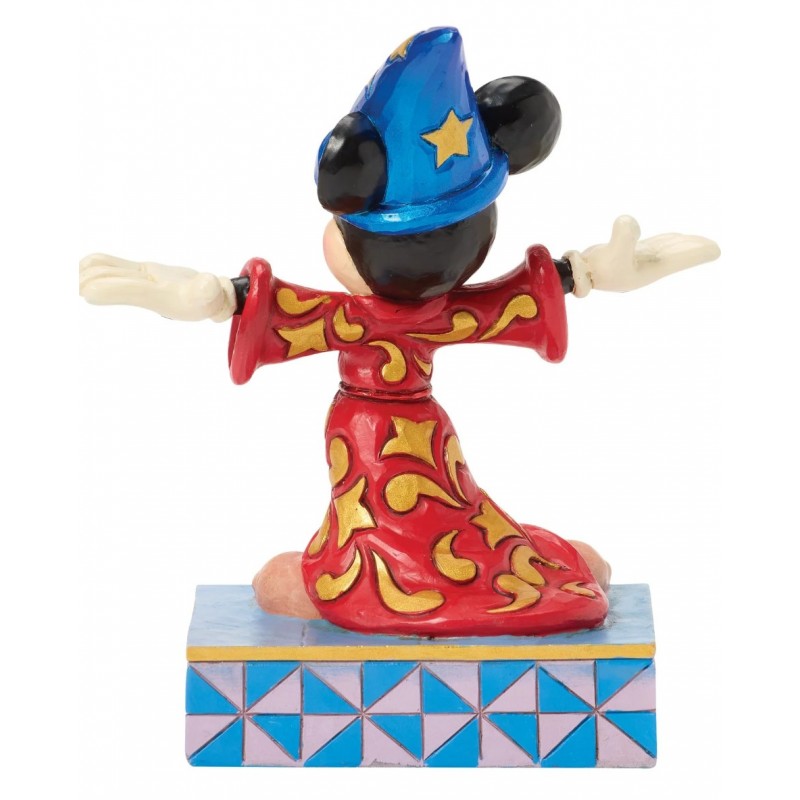 La figura de Mickey El Hechicero de Enesco es un tributo encantador al clásico personaje de Disney. Esta pieza coleccionable muestra a Mickey Mouse vestido como hechicero, con su icónico sombrero azul adornado con estrellas amarillas. Lleva una túnica roja con detalles dorados que añaden un toque de magia. La base cuadrada en tonos morados y azules presenta un diseño de estrellas que complementa perfectamente la figura. Fabricada con atención al detalle, es una opción ideal para coleccionistas de Disney o como un regalo único. Además, este producto cuenta con licencia oficial, garantizando su autenticidad.