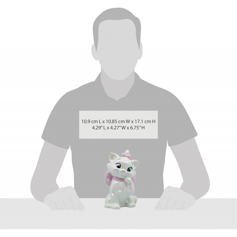 La hucha de cerámica Marie de Disney Showcase es el complemento perfecto para cualquier fan de Disney. Esta figura está diseñada con un acabado blanco iridiscente que refleja un arcoíris de colores, aportando un toque mágico a cualquier espacio. Con sus 17 cm de altura, la hucha es tanto funcional como decorativa. Es ideal para quienes desean añadir un elemento de encanto Disney a su hogar o para coleccionistas que buscan una pieza única.