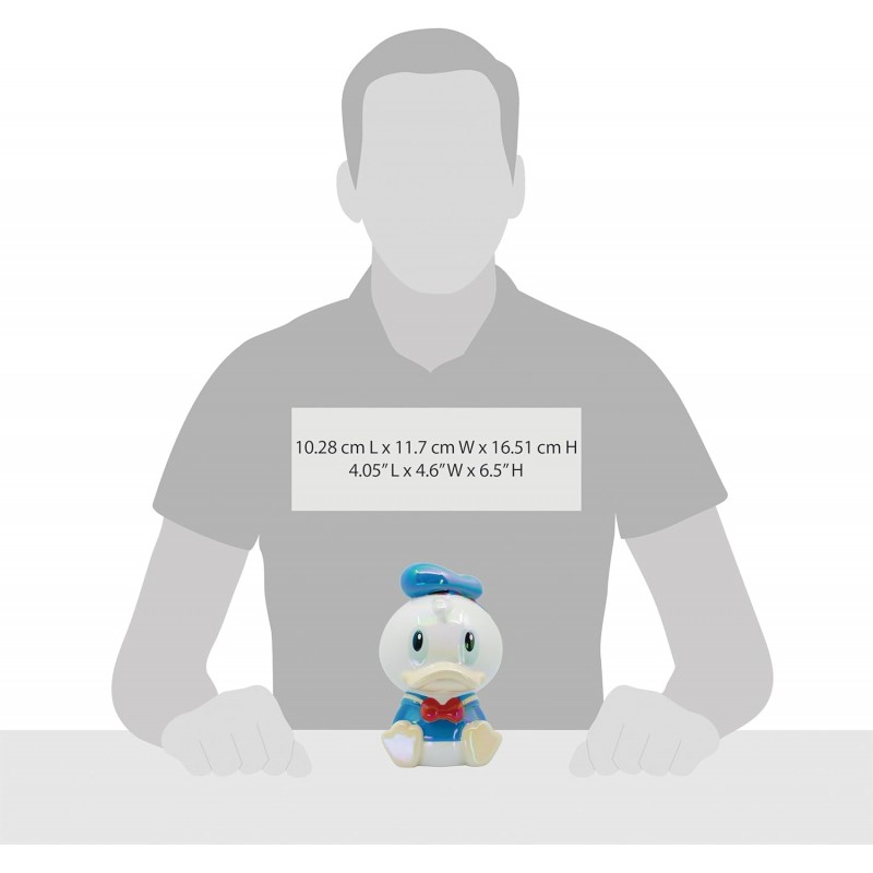 Descubre la hucha de cerámica del Pato Donald de Disney Showcase, una mezcla perfecta de funcionalidad y decoración. Con un acabado iridiscente que llama la atención, este artículo no solo es ideal para ahorrar, sino también para deslumbrar en cualquier rincón del hogar. Con una altura de 16,5 cm, esta pieza añade un toque de magia Disney a tu colección.