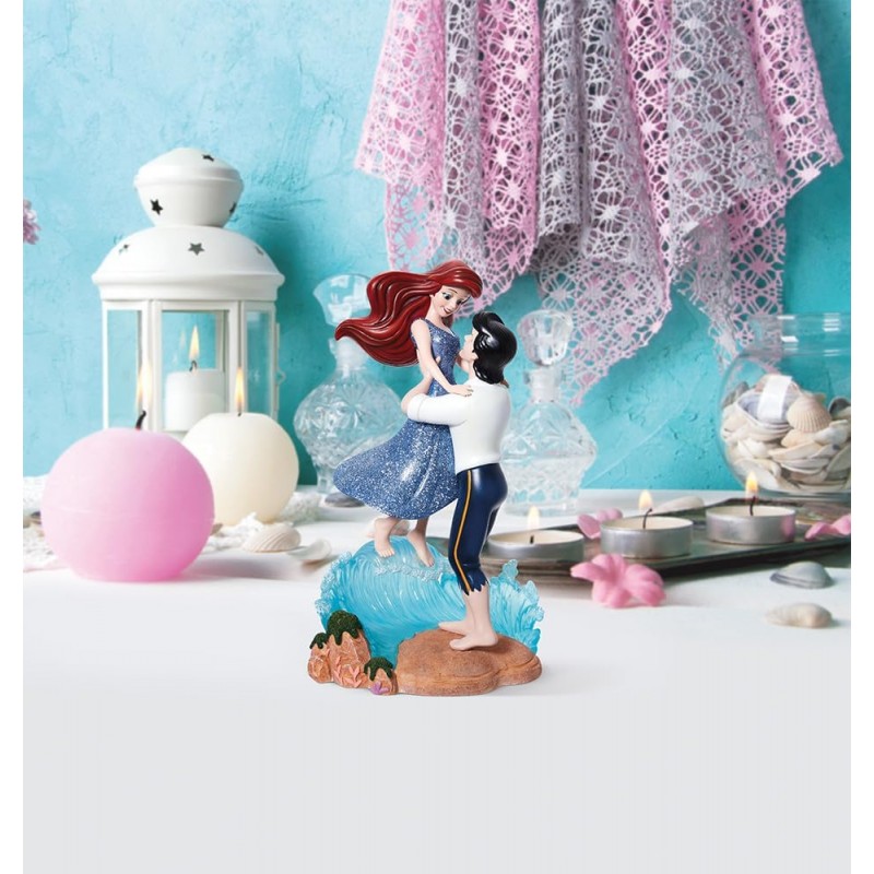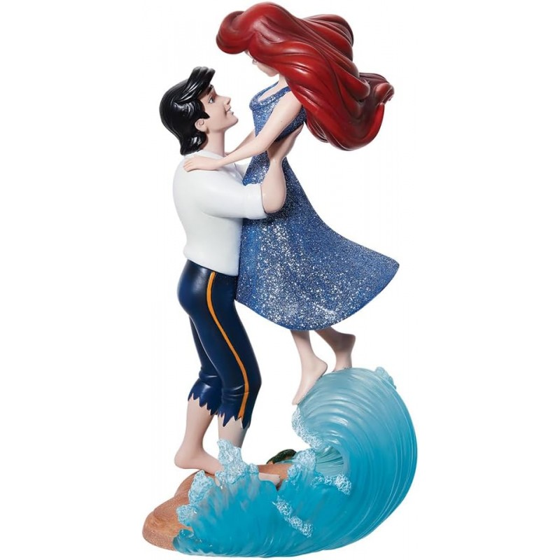 Descubre la figura decorativa de Enesco que captura el romance eterno de Ariel y Eric sobre la ola. Con un tamaño de 27 cm, esta pieza está meticulosamente fabricada en resina, tallada y pintada a mano, lo que la convierte en una joya de colección única.