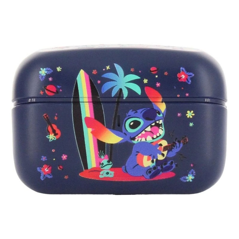 Descubre los auriculares inalámbricos TWS Buds Stitch Pro, un accesorio imprescindible para los fans de Lilo & Stitch. Con un diseño llamativo que muestra a Stitch en divertidas posiciones, estos auriculares son ideales para quienes buscan estilo y funcionalidad. Cuentan con un acabado azul oscuro adornado con ilustraciones coloridas que capturan la esencia del personaje.