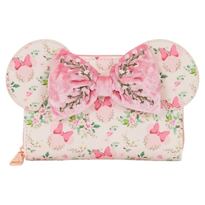 Descubre el elegante monedero Minnie Mouse Floral de Disney by Loungefly, una joya para los fans de Minnie Mouse. Este encantador monedero destaca por su diseño floral en tonos rosa y blanco, capturando la esencia del icónico personaje de Disney con un gran lazo de terciopelo rosa decorado con detalles florales. Fabricado en cuero PU de alta calidad, asegura durabilidad y estilo.