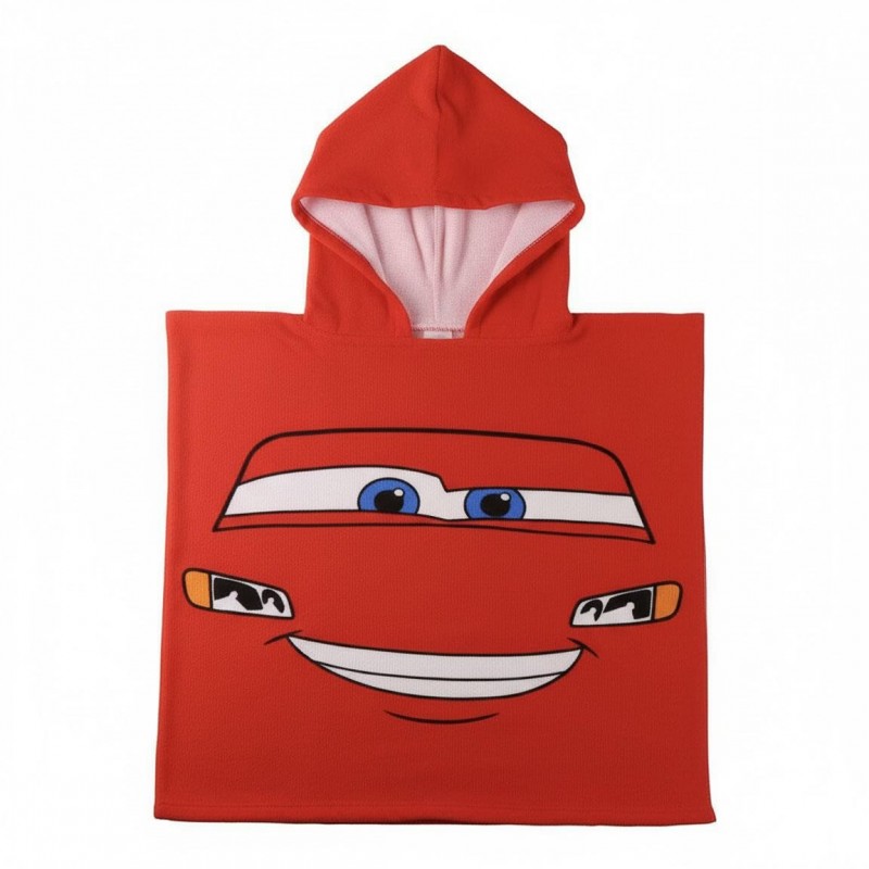 Este poncho de microfibra en vibrante color rojo es el accesorio perfecto para los pequeños fanáticos de Cars. Confeccionado en 100% poliéster, garantiza suavidad y comodidad excepcional. El diseño frontal presenta el conocido rostro de Rayo McQueen, con sus ojos grandes y amigables, mientras que la parte posterior destaca el número 95 junto con su nombre. Ideal para secarse después de un día de playa o piscina, este poncho es tan funcional como divertido.