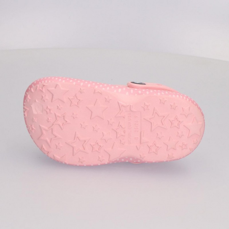 Descubre los encantadores zuecos premium de Minnie, un calzado ideal para las más pequeñas. Confeccionados al 100% en EVA, estos zuecos son ligeros, cómodos y perfectos para un uso diario. Su diseño en color rosa está adornado con un lazo de Minnie en la parte superior, que se complementa con una suela decorada con puntos blancos. Los zuecos cuentan con orificios de ventilación en forma de estrella y correas ajustables con el rostro de Minnie, asegurando un ajuste ideal.