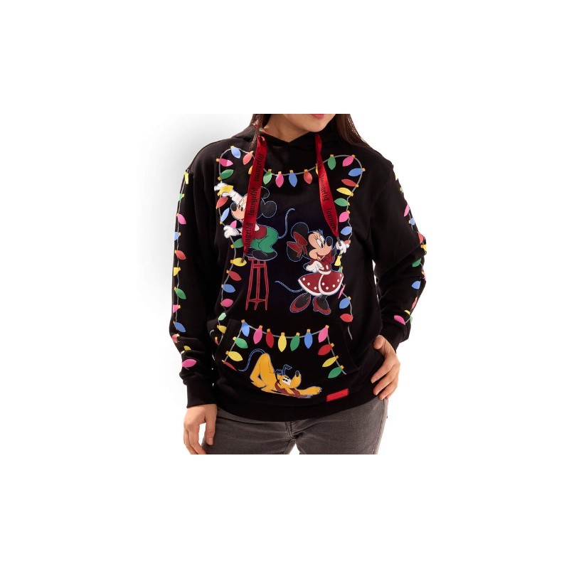 Descubre la sudadera con capucha de Mickey & friends en talla XL de la reconocida marca LOUNGEFLY. Esta prenda, decorada con un estampado vibrante de personajes icónicos como Mickey y Minnie, está rodeada de luces coloridas que añaden un toque festivo y alegre. Su diseño en color negro destaca por la calidad de sus materiales, ofreciendo comodidad y estilo para cualquier ocasión. Ideal como regalo original o un capricho especial, este producto con licencia oficial garantiza autenticidad. Perfecta para los aficionados de Disney que buscan mantener su pasión en el día a día.
