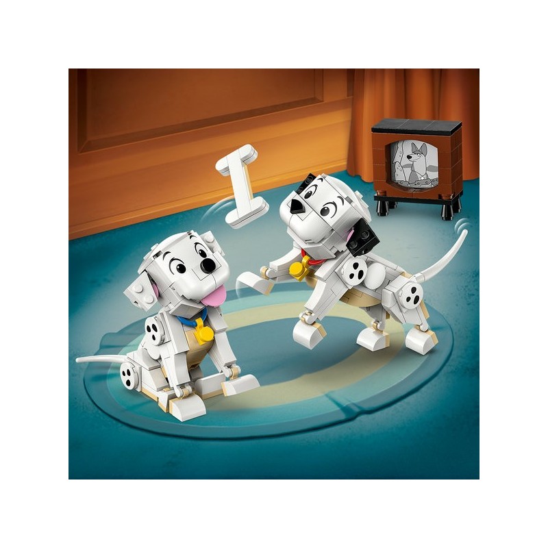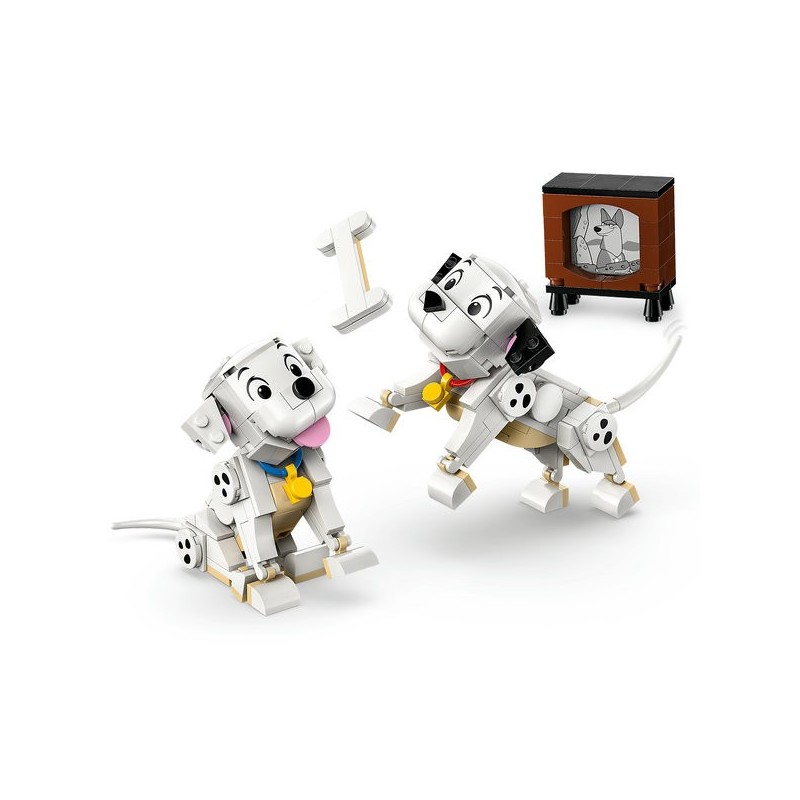 El set LEGO® | Disney Lucky y Penny: Cachorros de 101 Dálmatas es un regalo ideal para niños desde los 6 años. Con 268 piezas, este set permite construir dos adorables cachorros dálmatas, Lucky y Penny, inspirados en el clásico de Disney. Incluye un hueso y un televisor con pantalla, permitiendo a los pequeños sumergirse en el juego imaginativo o exhibir sus creaciones.