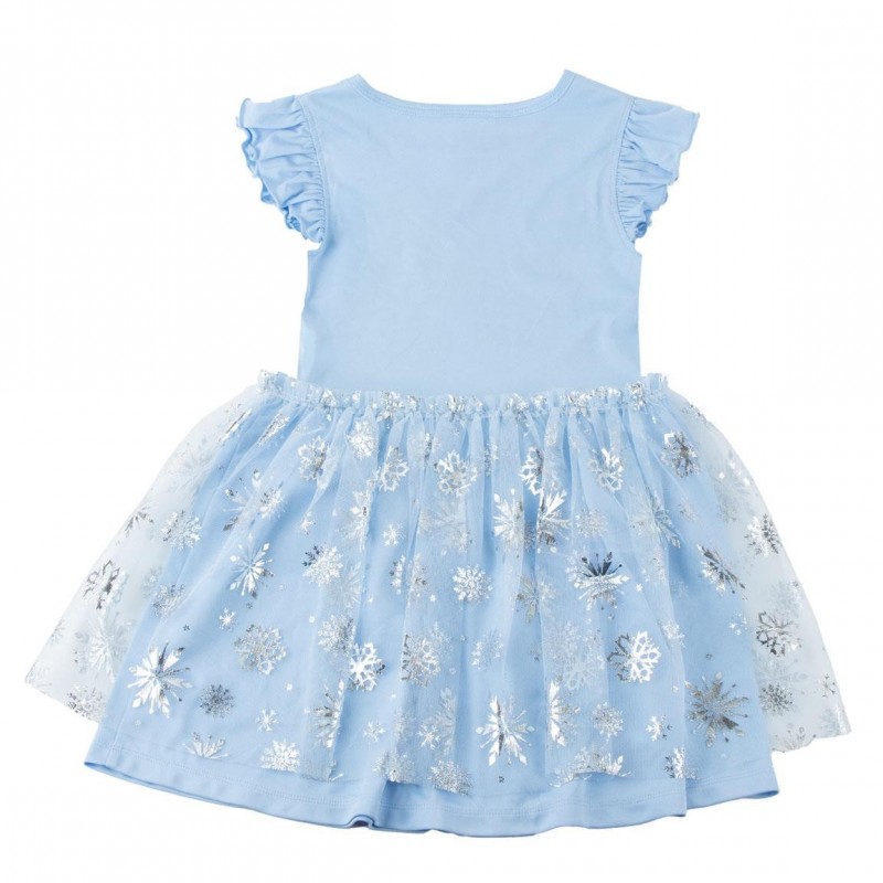 El vestido está confeccionado en 100% poliéster asegurando comodidad y durabilidad. La falda está adornada con un tul decorado con copos de nieve plateados, perfectos para añadir un toque de brillo y hacerlas sentir como verdaderas princesas de hielo.