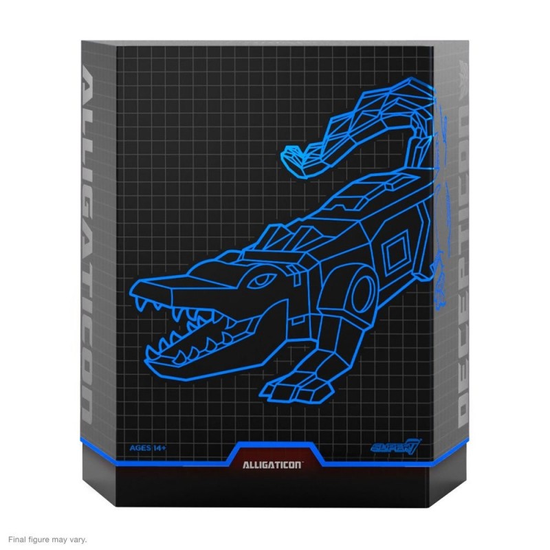 Descubre la impresionante figura de colección Transformers Ultimates Alligaticon, fabricada por Super7. Con un tamaño de aproximadamente 28 cm, esta figura se presenta en un vibrante diseño que combina colores rojo, blanco y azul, evocando un estilo retro futurista. Sus detalles muestran una apariencia de cocodrilo con bordes angulares y una estructura articulada.
