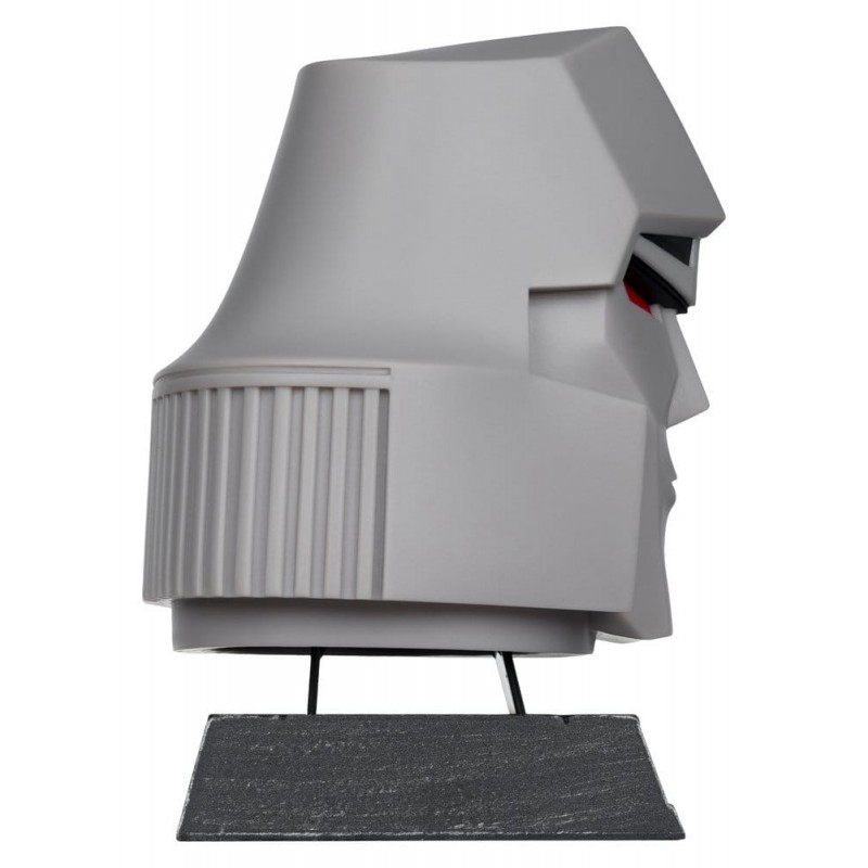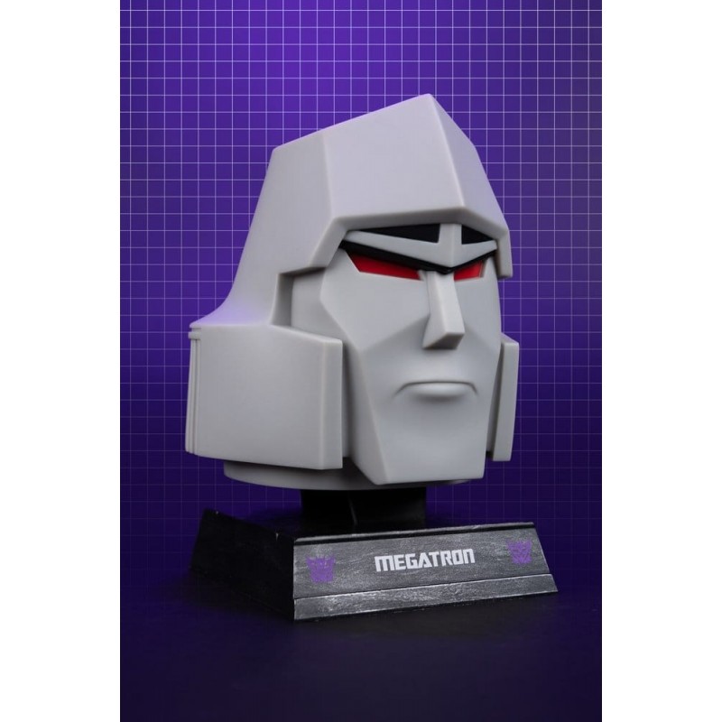 Descubre la réplica a escala 1/3 de la icónica cabeza de Megatron, una pieza imprescindible para los apasionados de Transformers. Esta figura de 17,5 cm destaca por su detallado diseño, capturando la esencia del líder Decepticon con una precisión impresionante. Su acabado en tonos grises con detalles en rojo y negro le da un toque auténtico, mientras que la base con el logotipo "Megatron" añade estabilidad y elegancia, perfecta para exposición.