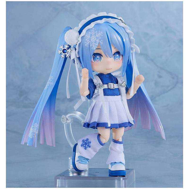 La Figura Nendoroid Doll de Snow Miku, versión Yukiiro Pop, es una representación encantadora de la icónica personaje de Vocaloid, Hatsune Miku. Esta figura de 14 cm combina la adorable estética de Nendoroid con un diseño de muñeca articulada. Vestida con ropa de tela detallada, la figura luce un atuendo inspirado en el invierno, con tonos azules y blancos que evocan la nieve y el hielo.
