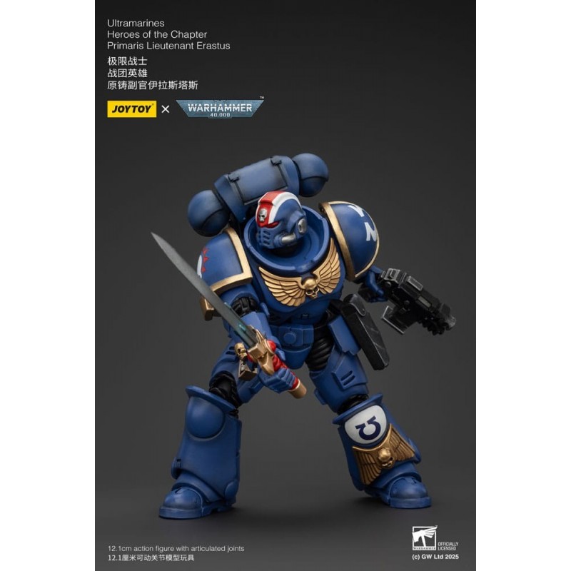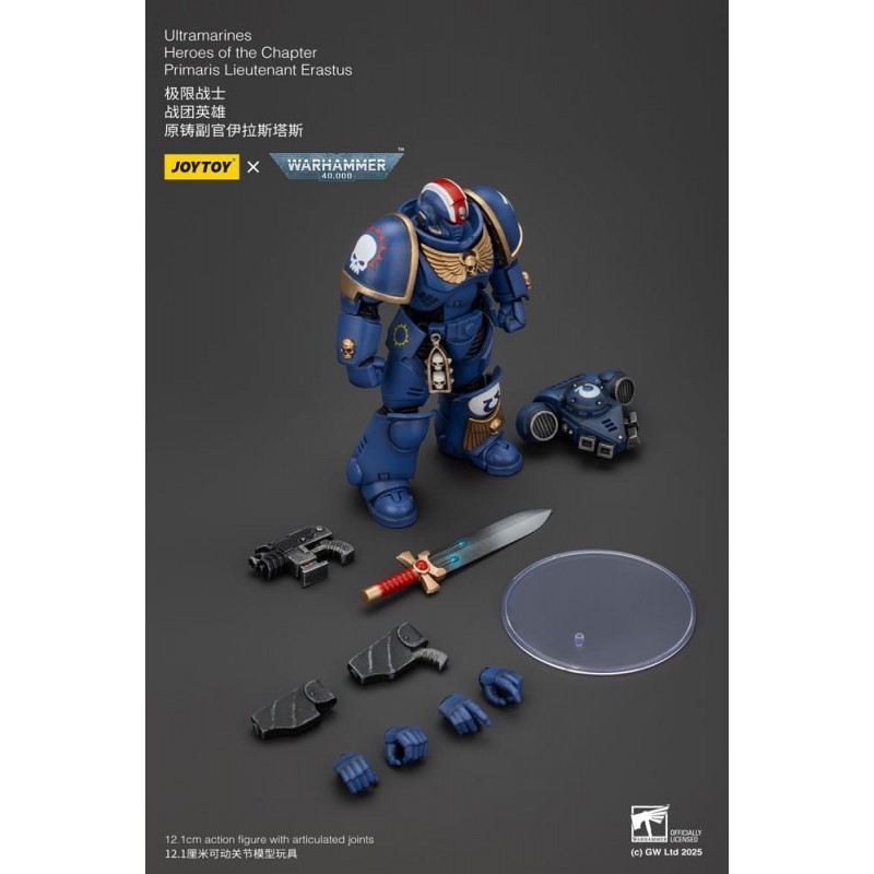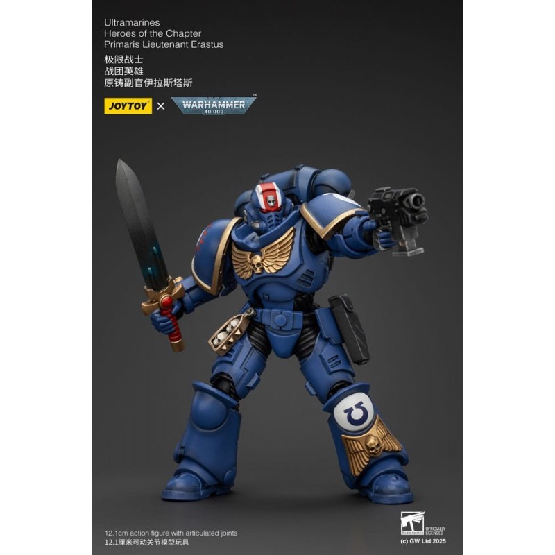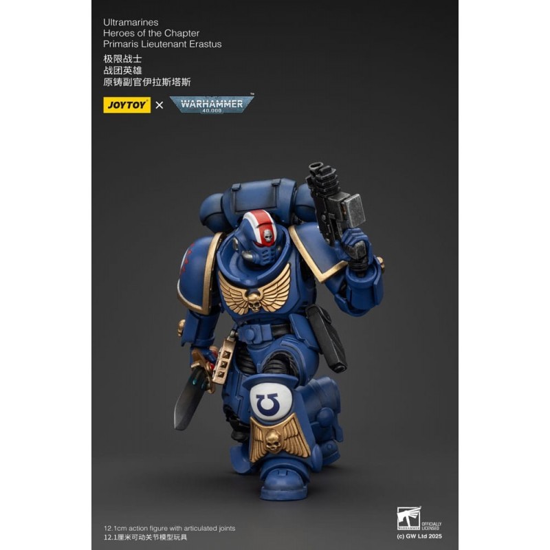 Descubre la figura de Warhammer 40k que captura la esencia imponente del Primaris Lieutenant Erastus, miembro de los Ultramarines. Esta figura articulada, de aproximadamente 20 cm, es un verdadero tesoro para los fanáticos de la serie. Fabricada por Joy Toy, es una pieza de colección oficial que resalta por sus detalles precisos y su diseño robusto.