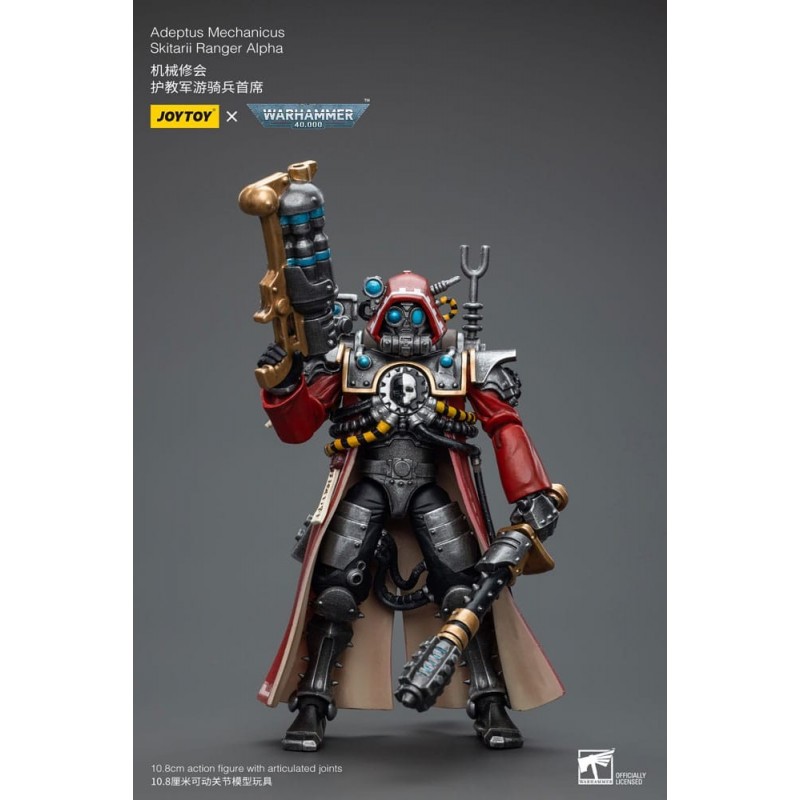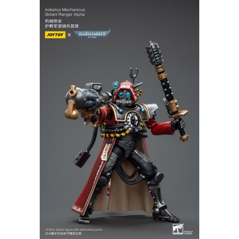 Explora el universo de Warhammer 40k con esta impresionante figura articulada del Adeptus Mechanicus Skitarii Ranger Alpha. Esta figura de 10,8 cm es una fiel representación de los icónicos personajes del juego de estrategia, fabricada con todo detalle por Joy Toy. Con un acabado en colores rojo y metálico, su diseño detallado incluye una capa y múltiples accesorios intercambiables, como armas y manos, hechos para ambientar cualquier colección o diorama.
