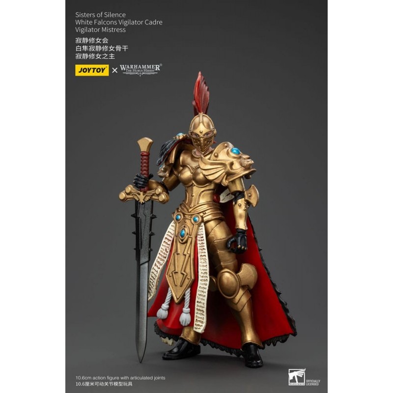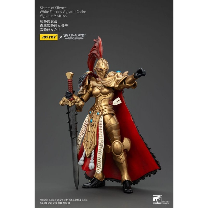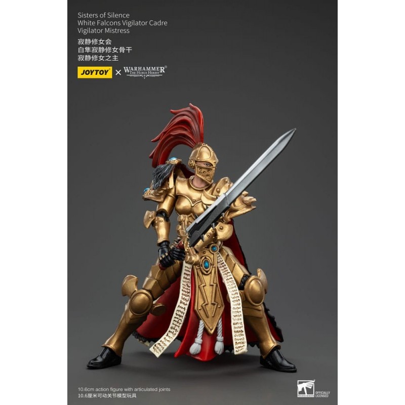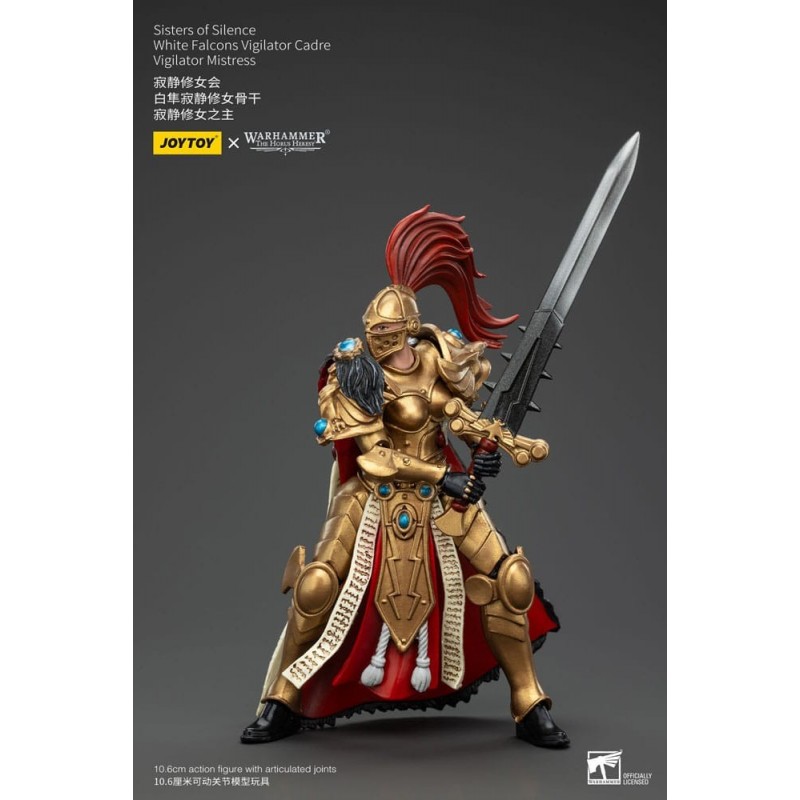 Descubre la impresionante figura articulada de las Sisters of Silence, representando a la Vigilator Mistress del White Falcons Vigilator Cadre de Warhammer The Horus Heresy. Con un tamaño de aproximadamente 19 cm, esta figura elaborada por Joy Toy refleja la dedicación y detalle característicos de la marca.