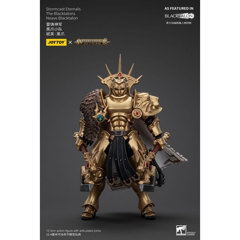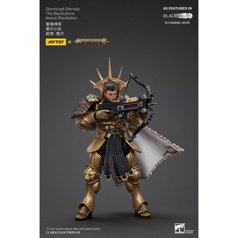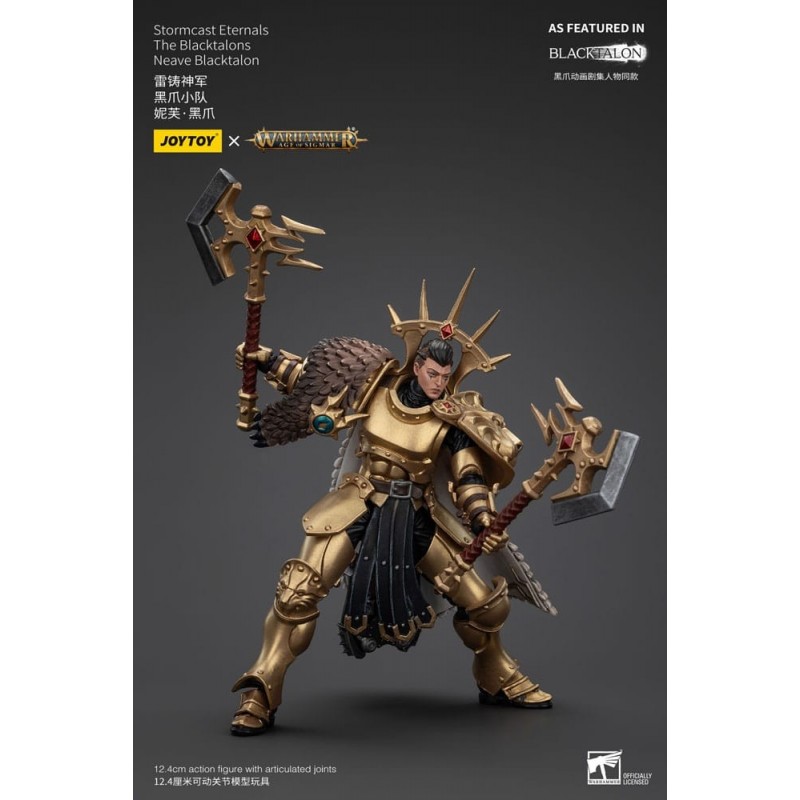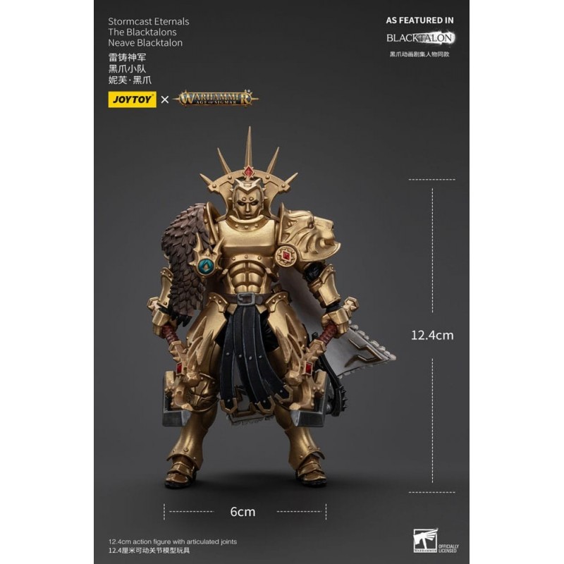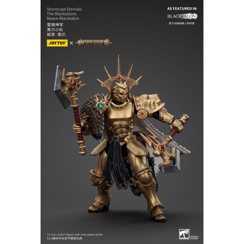 Descubre la figura articulada de Neave Blacktalon de 20 cm, parte del universo Warhammer Age of Sigmar. Esta impresionante figura de acción, fabricada por Joy Toy, captura cada detalle de los Stormcast Eternals, específicamente de los poderosos The Blacktalons. Neave Blacktalon está equipada con una armadura dorada detallada, acompañada de accesorios como armas intercambiables y manos adicionales, ofreciendo opciones para múltiples poses.