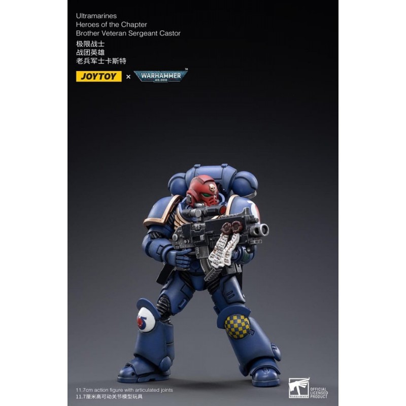 Adéntrate en el universo de Warhammer 40k con la figura articulada de 12 cm del Hermano Sargento Veterano Castor de los Ultramarines. Este personaje icónico presenta una armadura azul detallada con acentos dorados, y lleva un casco rojo que destaca su estatus de comando en el capítulo. Fabricada por Joy Toy, la figura garantiza máxima calidad en detalles y durabilidad.