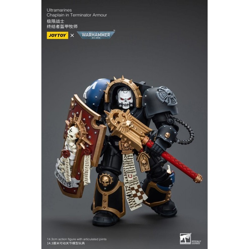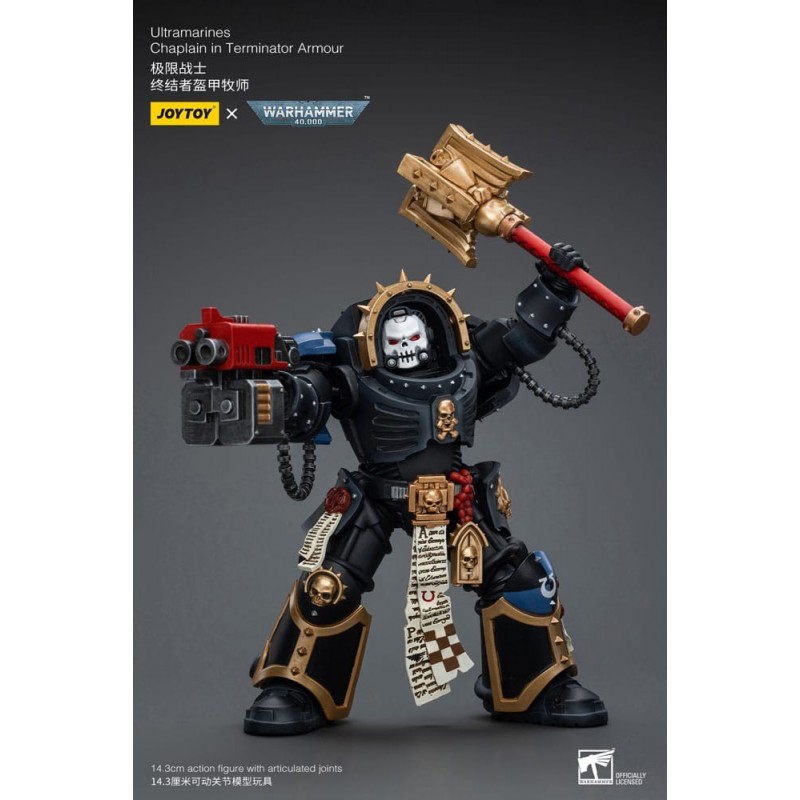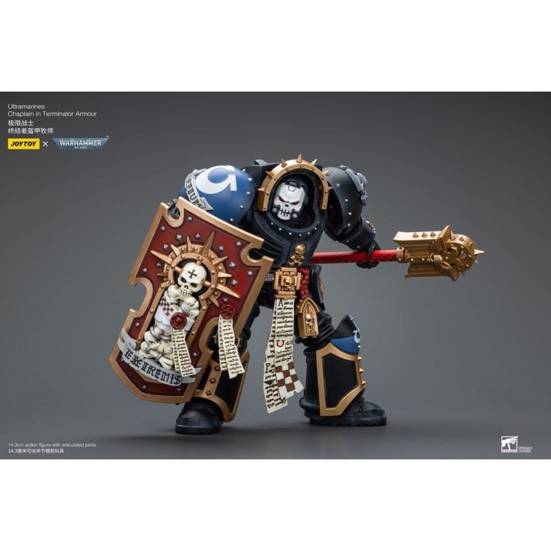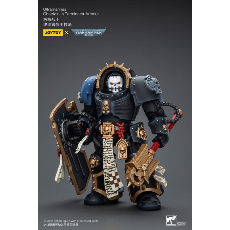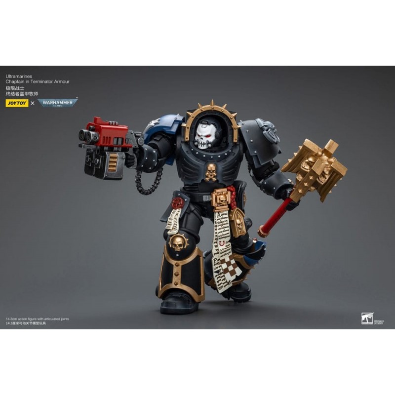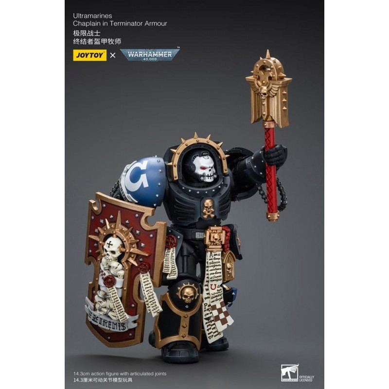 Explora el universo de Warhammer 40k con esta impresionante figura del Ultramarines Chaplain en Terminator Armour. Con una altura de aproximadamente 12 cm, esta figura articulada captura cada detalle del icónico personaje, desde su armadura negra adornada con detalles dorados hasta su imponente maza y escudo. Los intricados detalles, como el motivo de calaveras y los pergaminos colgantes, hacen de esta figura una pieza bastante especial para cualquier fan. Fabricada por Joy Toy, esta figura con licencia oficial es un regalo perfecto para coleccionistas y entusiastas de Warhammer.