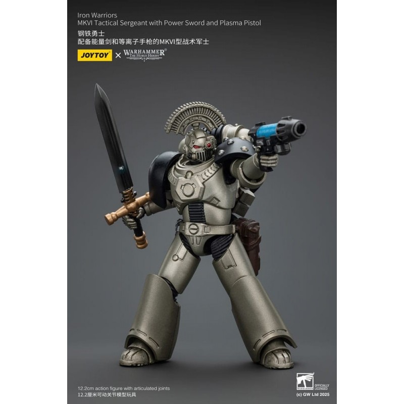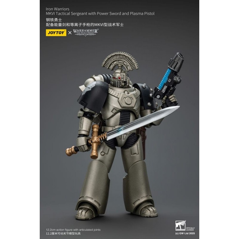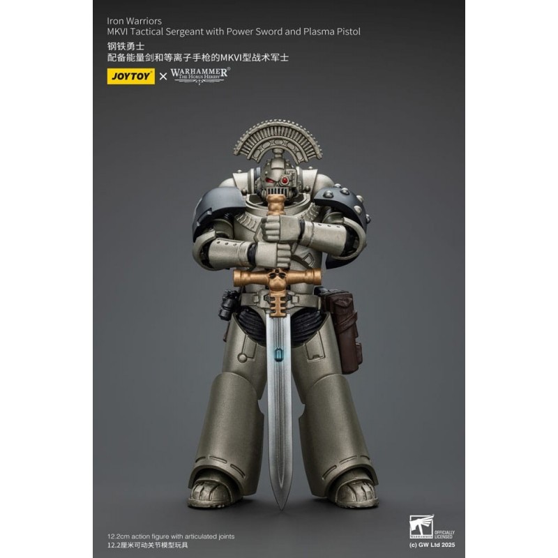 Descubre la figura articulada de Iron Warriors MKVI Tactical Sergeant, del famoso universo de Warhammer The Horus Heresy. Este imponente sargento está equipado con una espada de poder y una pistola de plasma, fieles a las características épicas de los Iron Warriors.