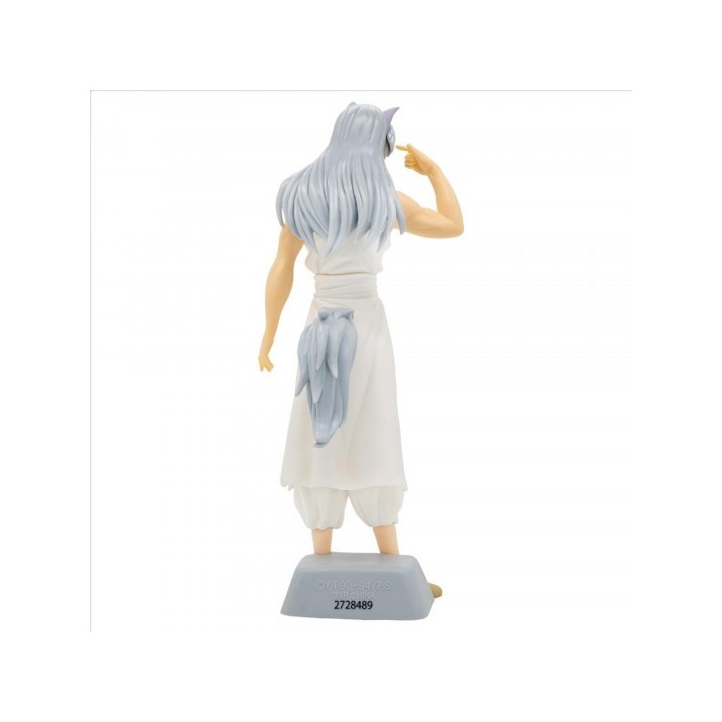 Esta figura pre-pintada destaca por su diseño meticuloso y su pose elegante. Youko Kurama viste una túnica blanca con detalles finamente esculpidos, y su cabello largo y plateado añade un toque de dinamismo y realismo. La base incluida es perfecta para su exposición, asegurando estabilidad y permitiendo que la figura brille en cualquier colección.