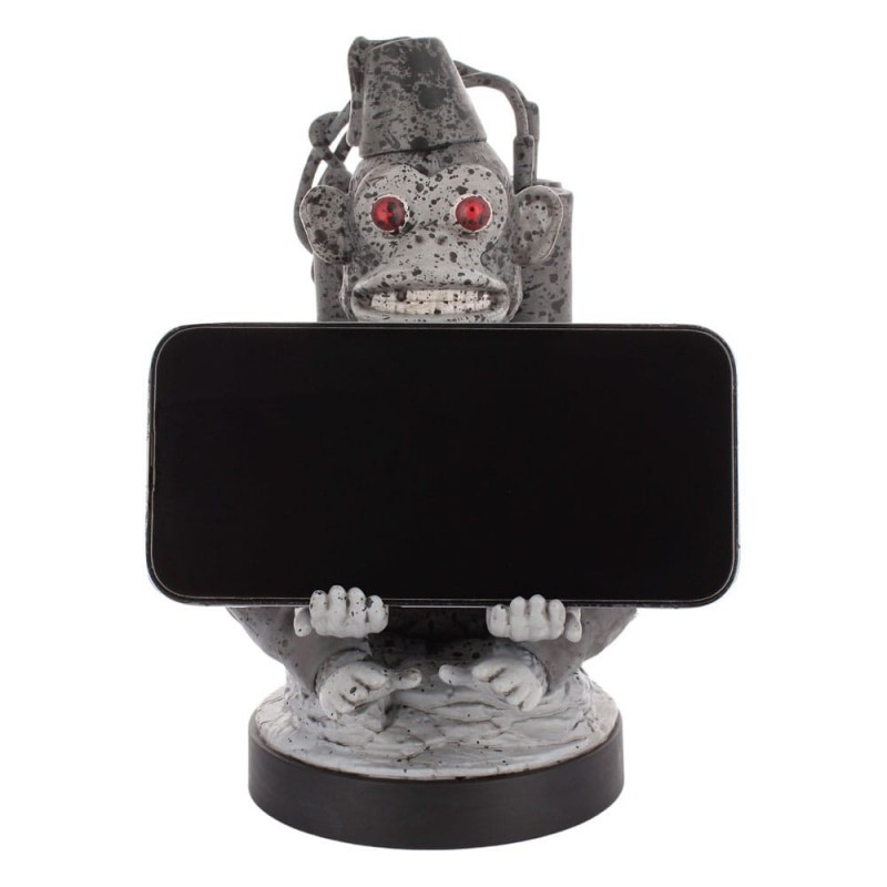 Découvrez le support Cably Guys Monkey Bomb, inspiré par le célèbre jeu vidéo Call of Duty. Avec un design unique, ce support de 20 cm présente un singe détaillé dans des tons gris et noirs, avec des yeux rouges saisissants. Parfait pour tenir et charger des manettes comme le DualShock 4 et le Xbox One Wireless Controller, il est également compatible avec les téléphones portables. Ce produit sous licence officielle par Exquisite Gaming garantit qualité et authenticité, une excellente addition à votre collection ou comme cadeau spécial pour les fans du jeu.