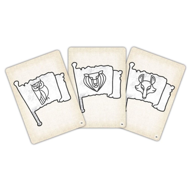 Le jeu comprend divers types de cartes : 24 cartes A-Deck, 6 cartes B-Deck, 3 cartes C-Deck, 12 cartes D-Deck et 16 cartes E-Deck, garantissant une expérience variée et dynamique à chaque partie. De plus, il comporte 7 cartes de référence et 32 disques en bois qui ajoutent de la profondeur stratégique au jeu.