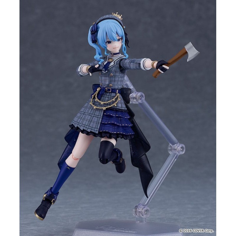 Découvrez la figurine articulée de Hoshimachi Suisei de Hololive Production, un article incontournable pour les fans de la célèbre VTuber. Mesurant environ 14 cm, cette figurine de la ligne Figma offre une représentation détaillée et polyvalente, permettant de recréer diverses poses grâce à ses multiples points d'articulation. Le design met en valeur la robe à carreaux de Suisei dans des tons de gris et de bleu, ornée de détails dorés et d'une ceinture en chaîne qui ajoute de l'élégance. Elle est livrée avec divers accessoires tels que des visages interchangeables, des mains supplémentaires, un microphone et une hache, permettant une personnalisation complète. Fabriquée par Max Factory, elle garantit qualité et fidélité au design original. Présentée dans une boîte avec fenêtre, elle est parfaite pour l'exposition ou pour offrir. Idéale pour les collectionneurs ou comme cadeau unique pour les fans de l'univers Hololive.