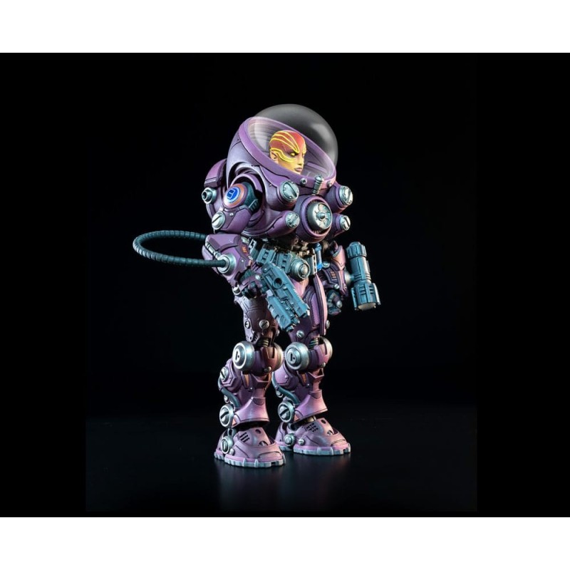 La figurine deluxe Uularia Speer de la série Cosmic Legions: Book One Thraxxon est une pièce de collection exceptionnelle pour les amateurs de science-fiction. Cette figurine captive par son design époustouflant en tons violets métalliques et détails argentés qui mettent en valeur ses caractéristiques futuristes. Le casque transparent permet une vue claire du visage et du casque complexes du personnage, ajoutant un niveau impressionnant de réalisme et de détail.