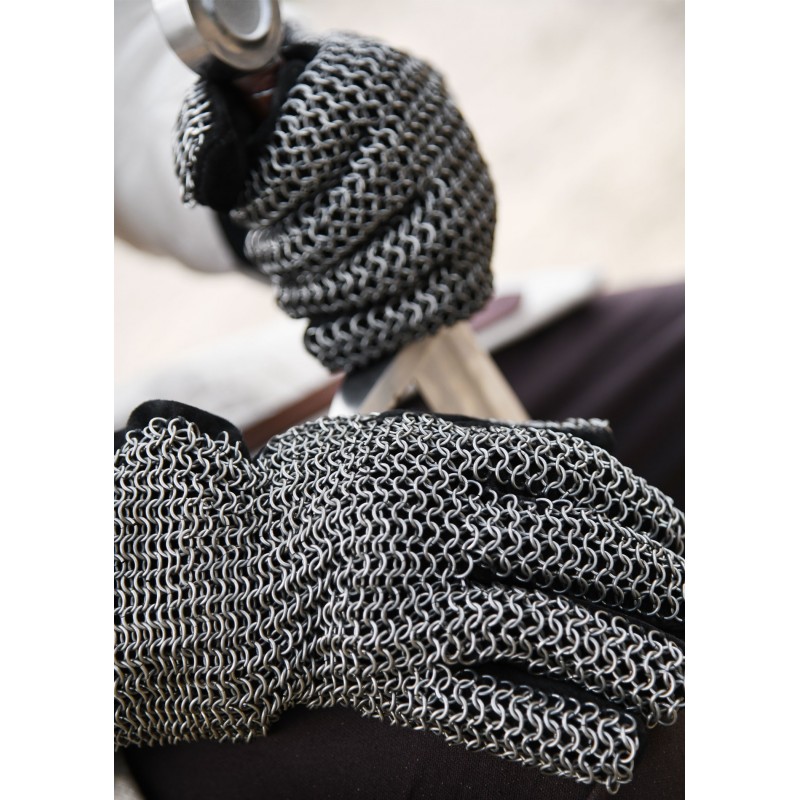 Découvrez le mélange parfait de tradition et de fonctionnalité avec ces gants en cotte de mailles. Fabriqués à la main en cuir souple et anneaux en acier au carbone de haute qualité, ces gants vous transportent à l'époque médiévale. Chaque gant est conçu avec le tissage classique 4 en 1, offrant durabilité et style.