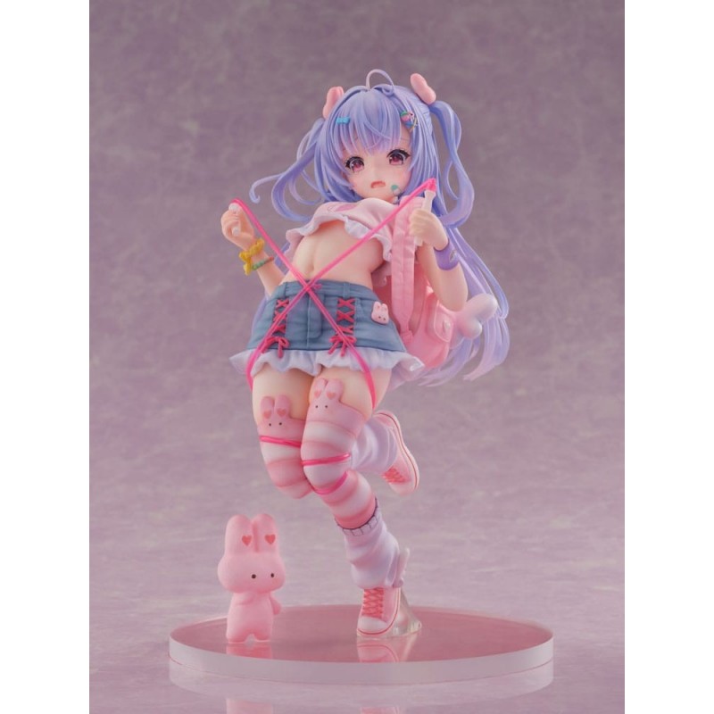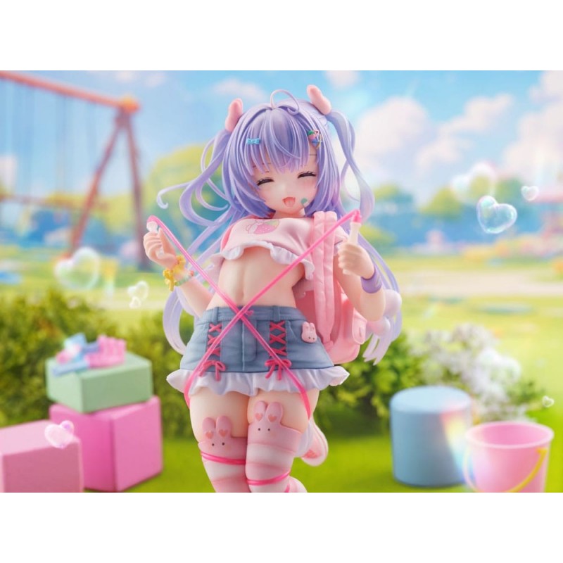 Découvrez la charmante statue de Miu Hazuki, un personnage original créé par Yuyuko. Avec son design coloré et joyeux, cette figurine en PVC à l'échelle 1/6 mesure environ 22 cm. Elle capture Miu dans un moment ludique, sautant à la corde avec une expression joyeuse sur son visage. Ses yeux violets brillants et ses cheveux lilas donnent un aspect magique. Habillée d'une jupe bleue avec des détails roses et des chaussettes ornées de lapins, cette figurine est un délice visuel pour tout fan de manga et d'anime. Fabriquée par Bellfine et présentée dans une boîte vitrine, c'est une pièce de collection sous licence officielle, parfaite pour offrir ou ajouter à votre collection personnelle.