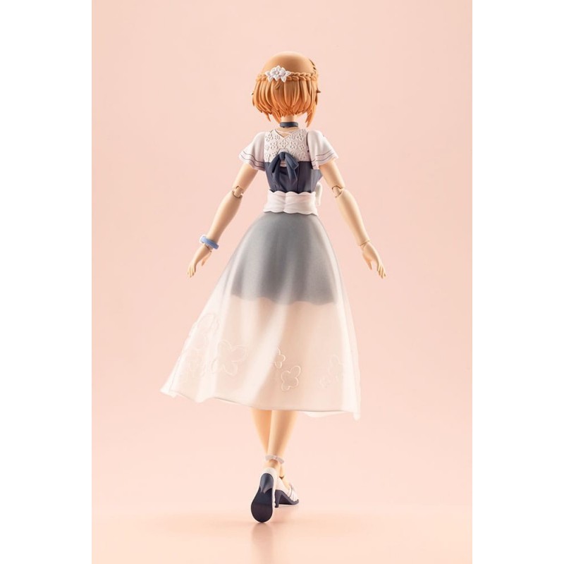 La figurine se distingue par sa tenue aux tons pastel, avec une longue robe bleu et blanc, décorée de motifs floraux. Les expressions faciales interchangeables et les multiples positions articulées permettent de recréer des scènes dynamiques ou d'adopter une apparence plus sereine et élégante, idéale pour toute collection.