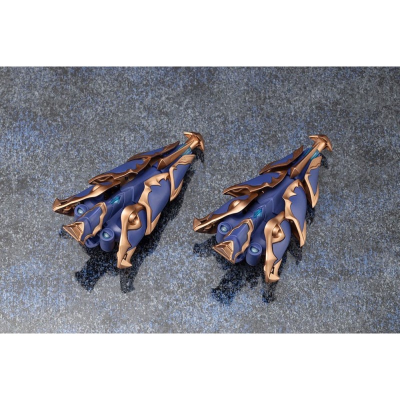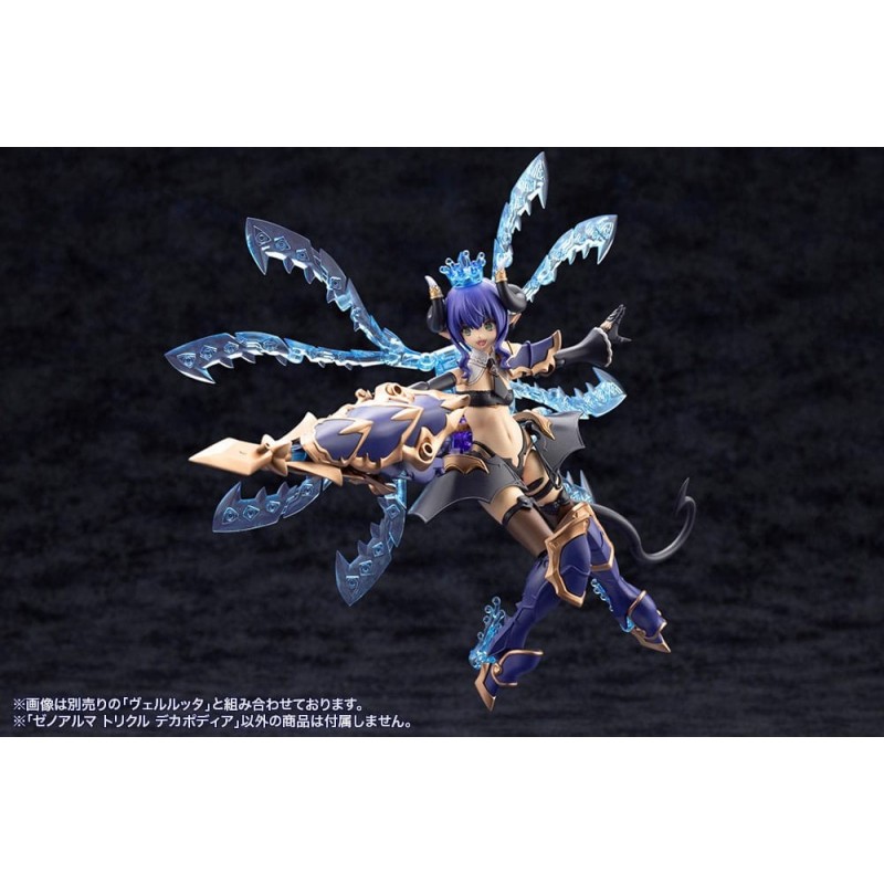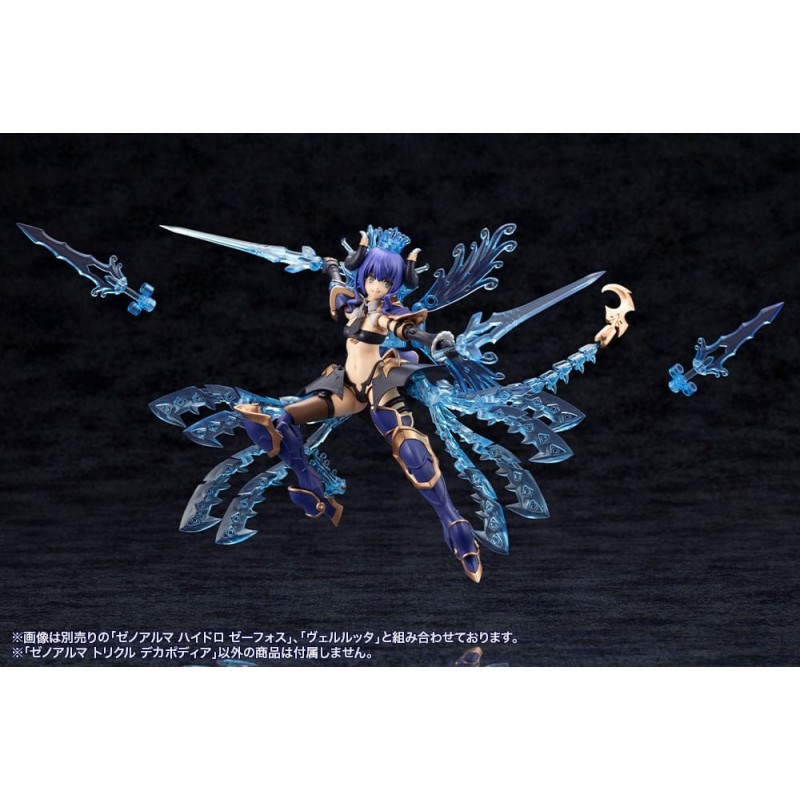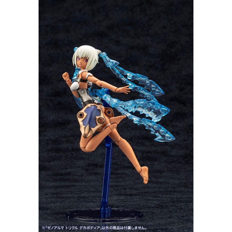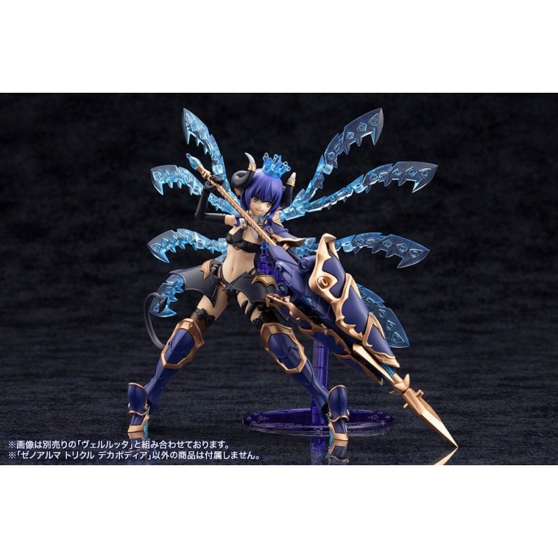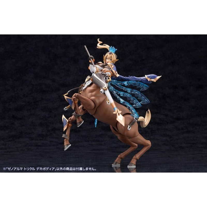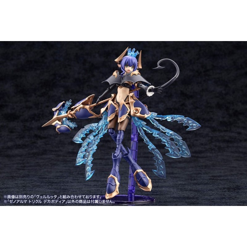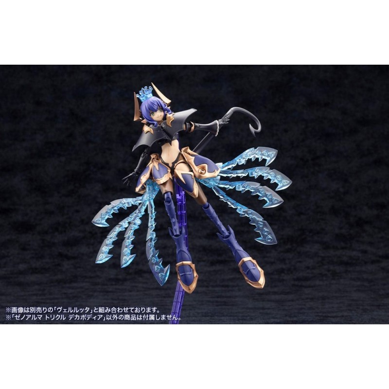 Découvrez la maquette Arcanadea Kit Modèle XenoAlma Trickle Dekapodia de 21 cm, une pièce magnifique de la série Kotobukiya Hexa Gear. Ce modèle présente une structure futuriste et détaillée avec des couleurs bleues et dorées, ainsi que des éléments translucides imitant une brillance cristalline, faisant de ce kit un joyau pour tout collectionneur.