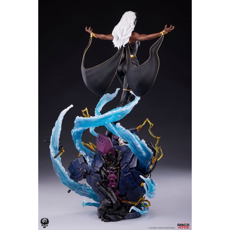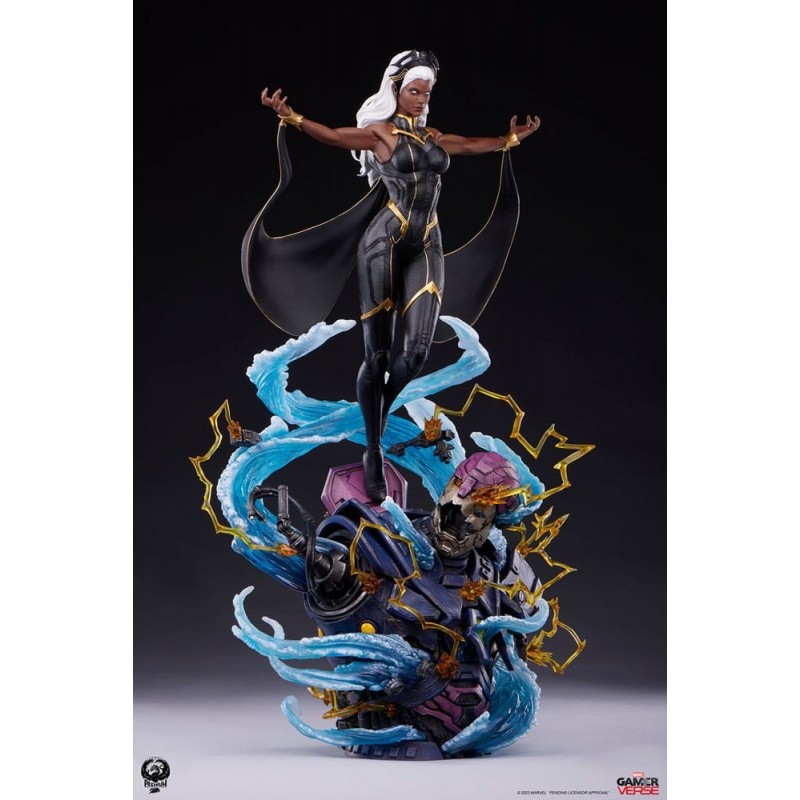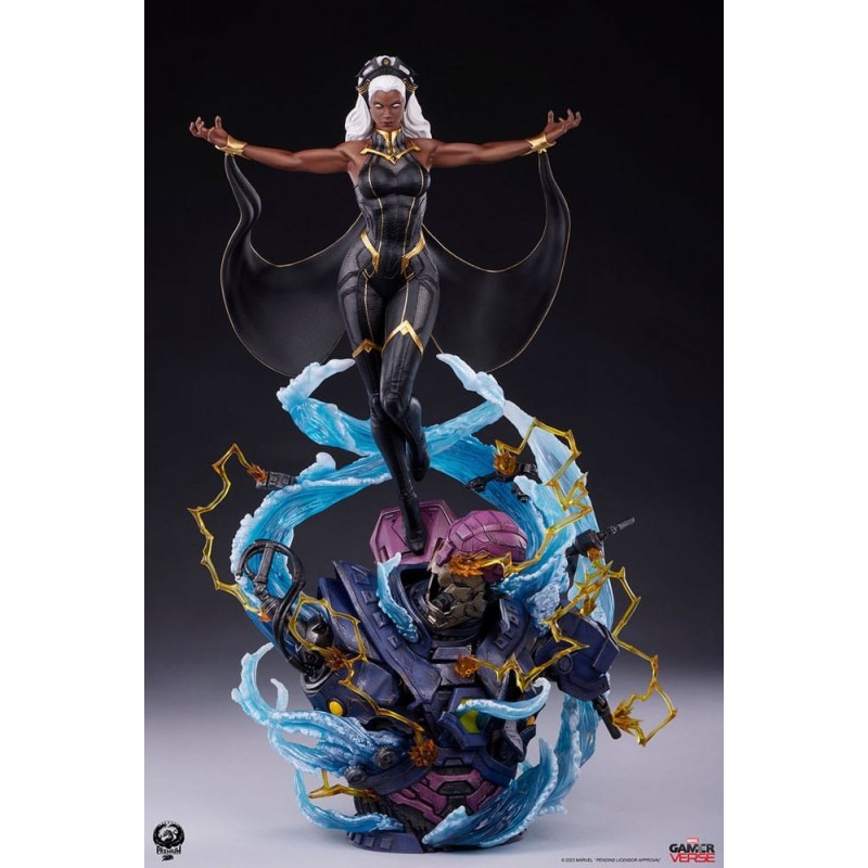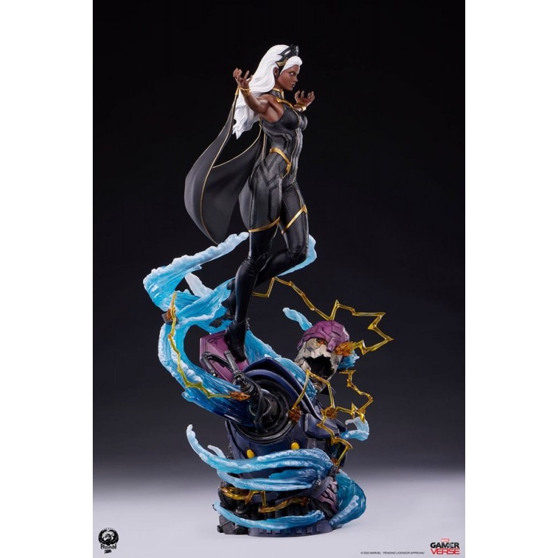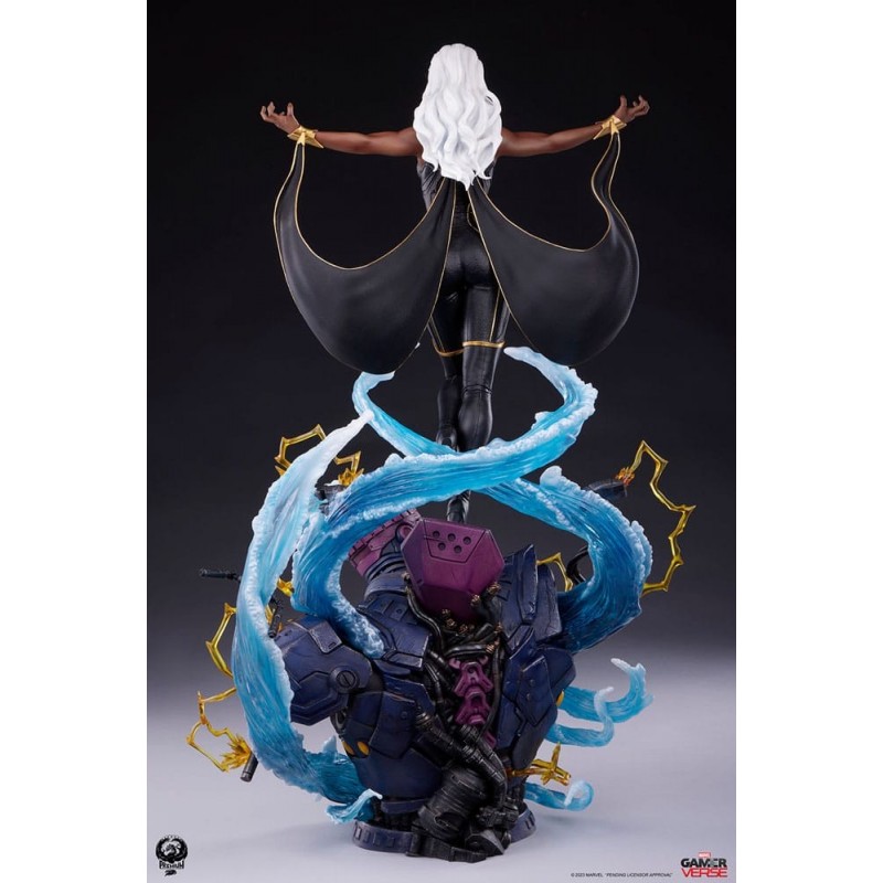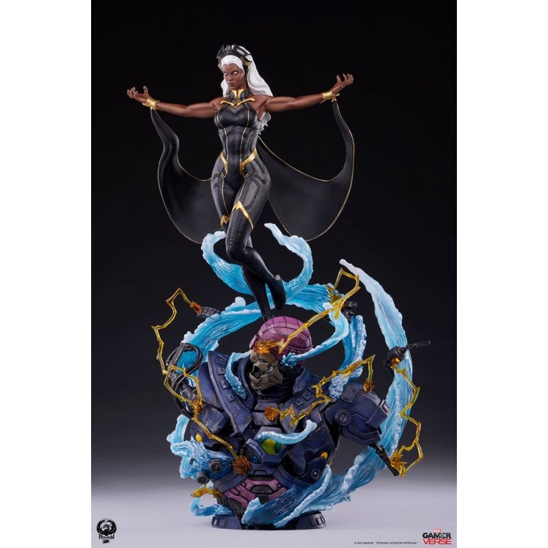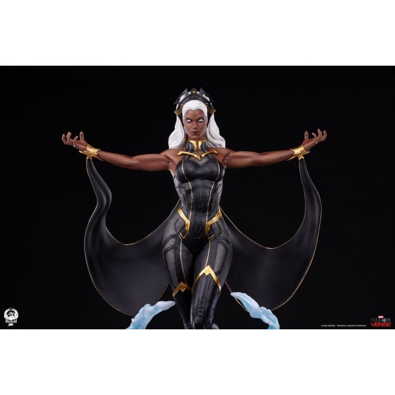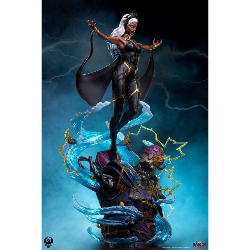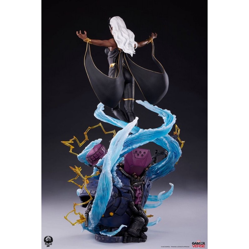 La statue capture Storm dans une pose puissante et majestueuse, entourée d'effets de vent et d'énergie électrique, montrant ses pouvoirs intenses. Chaque détail est fini, peint et numéroté à la main, assurant l'exclusivité et la valeur pour les collectionneurs.