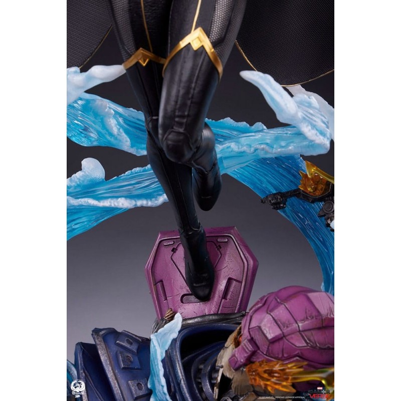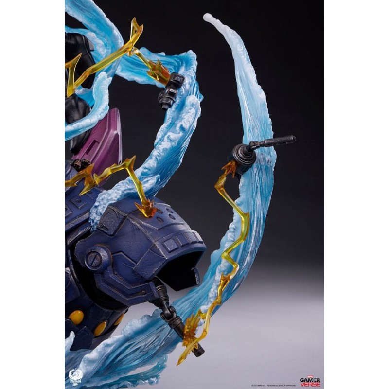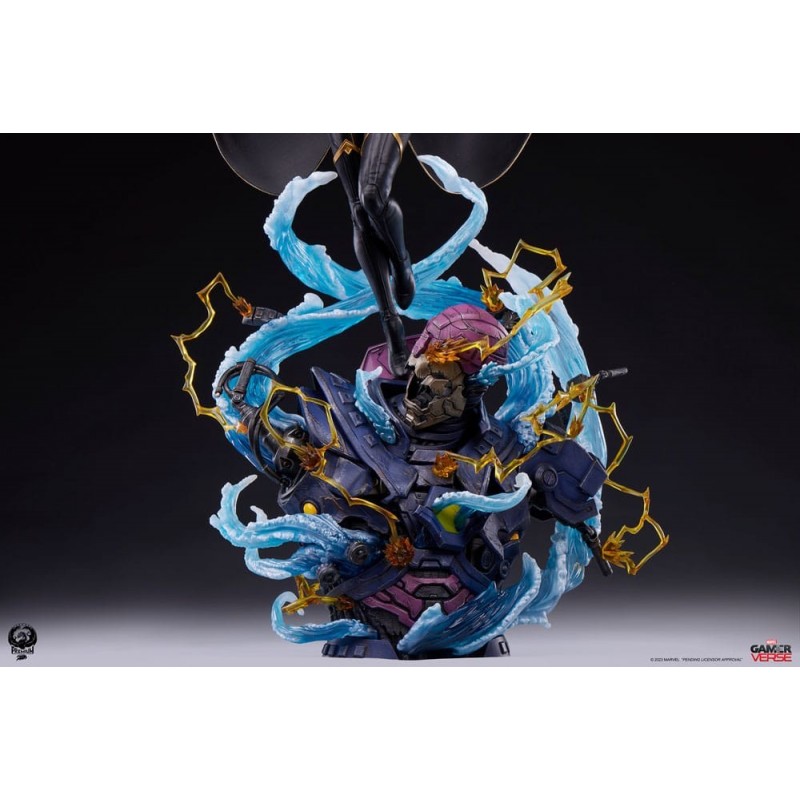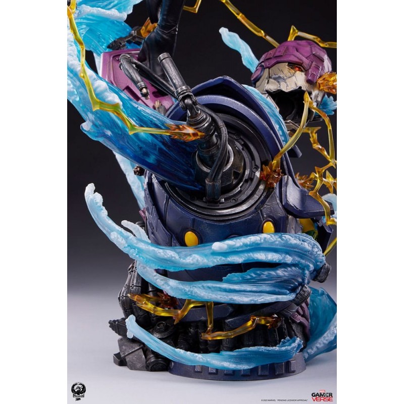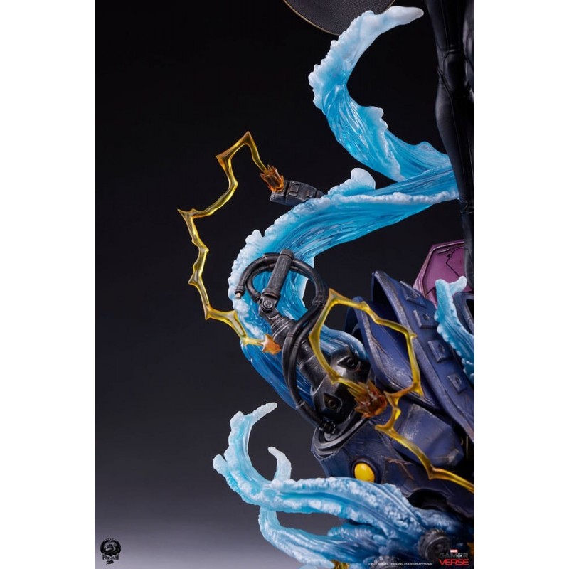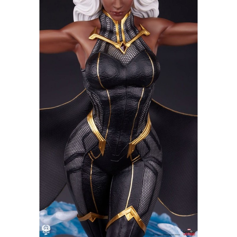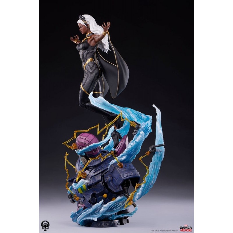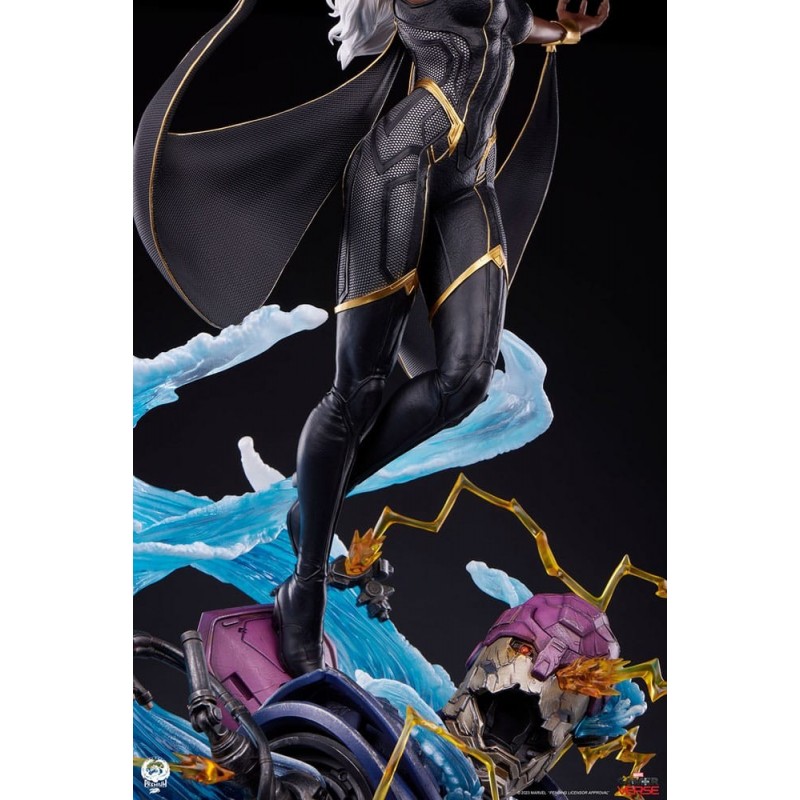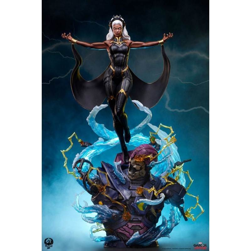 La statue capture Storm dans une pose puissante et majestueuse, entourée d'effets de vent et d'énergie électrique, montrant ses pouvoirs intenses. Chaque détail est fini, peint et numéroté à la main, assurant l'exclusivité et la valeur pour les collectionneurs.