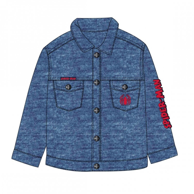 Découvrez la veste en denim Spiderman, spécialement conçue pour les enfants de 2 à 8 ans. Fabriquée en coton de haute qualité, cette veste offre confort et style aux jeunes fans de Spiderman. Le design comprend un logo Spiderman frappant sur la poitrine et le nom du super-héros sur la manche, tous deux en rouge vibrant, se détachant sur le fond denim bleu.