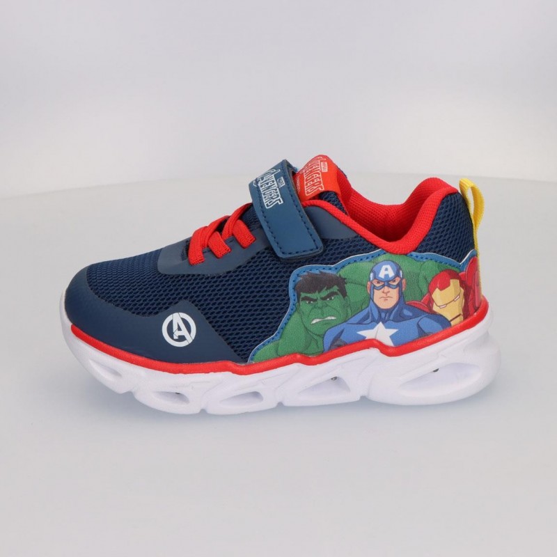 Ces chaussures de sport Avengers sont l'accessoire parfait pour les enfants fans de super-héros. Arborant un design en bleu marine, rouge et blanc, ces chaussures se distinguent par leurs détails vibrants et la présence de personnages emblématiques comme Iron Man, Captain America et Hulk sur le côté, ajoutant du fun et de l'aventure à chaque pas.