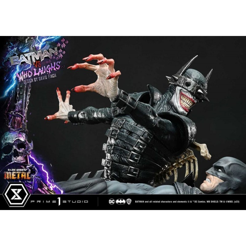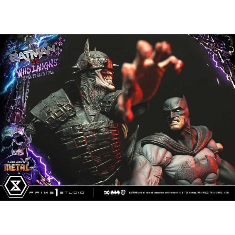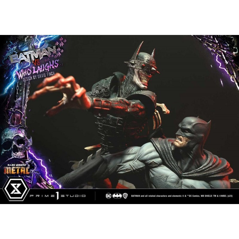 Découvrez la Statue Ultimate Premium Masterline de 67 cm qui immortalise le combat épique entre Batman et le Batman Who Laughs. Cet incroyable objet de collection, fabriqué par Prime 1 Studio, est en polyrésine de haute qualité et peint à la main, garantissant chaque détail avec une précision extraordinaire.